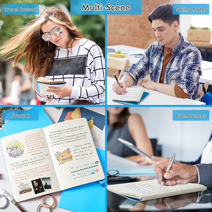 - These travel journals bulk for women have 92 blank lined pages (46 sheets), which would be sufficient for daily usage. The note taking notebooks have a smooth cover, round corners and tight stitching, which are designed to lay 180° flat. Some quick notes can help you remember important dates and find the page you want in a very short time.