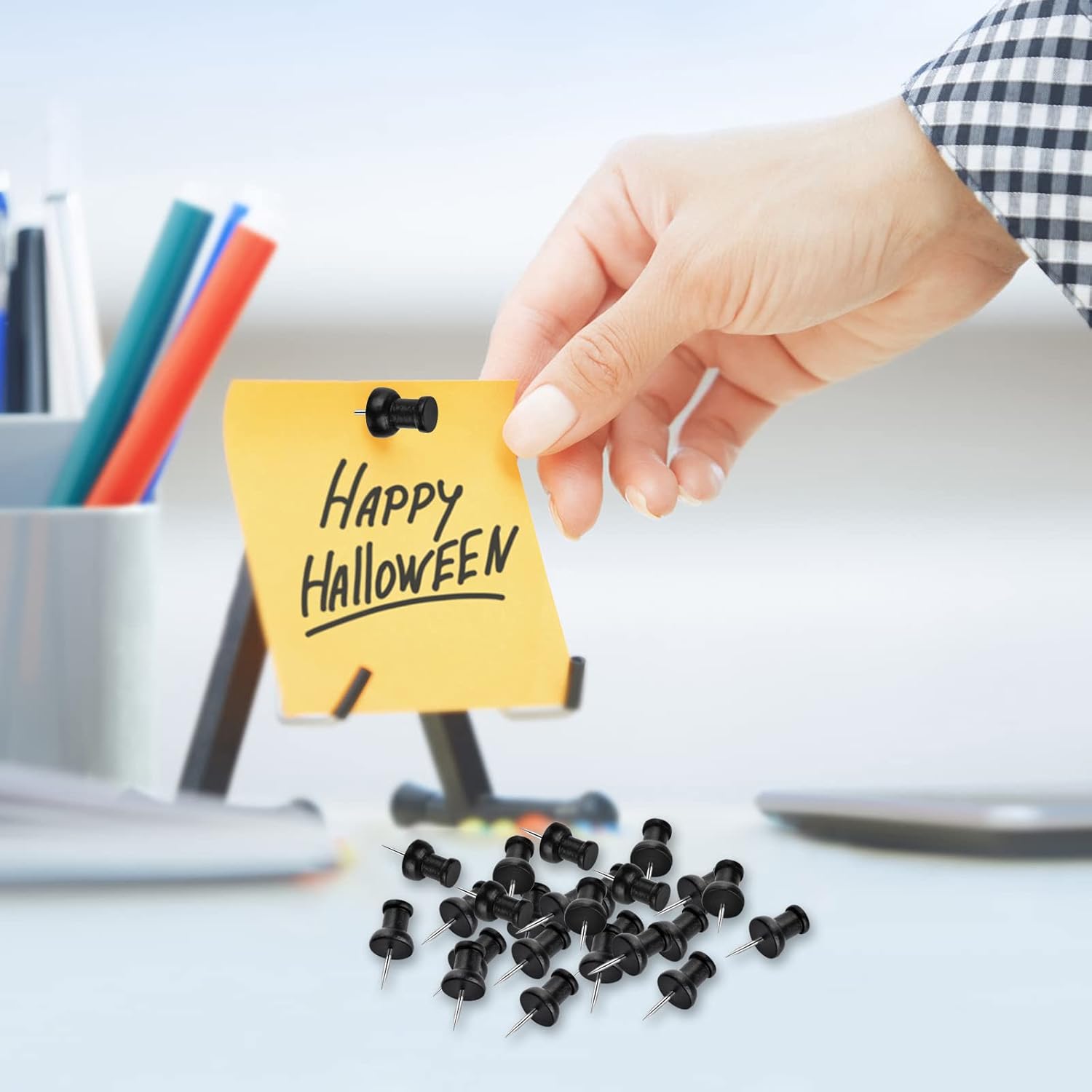 - Black wooden push pins, which is environmentally friendly and adorable, could also be serve as a family decoration.