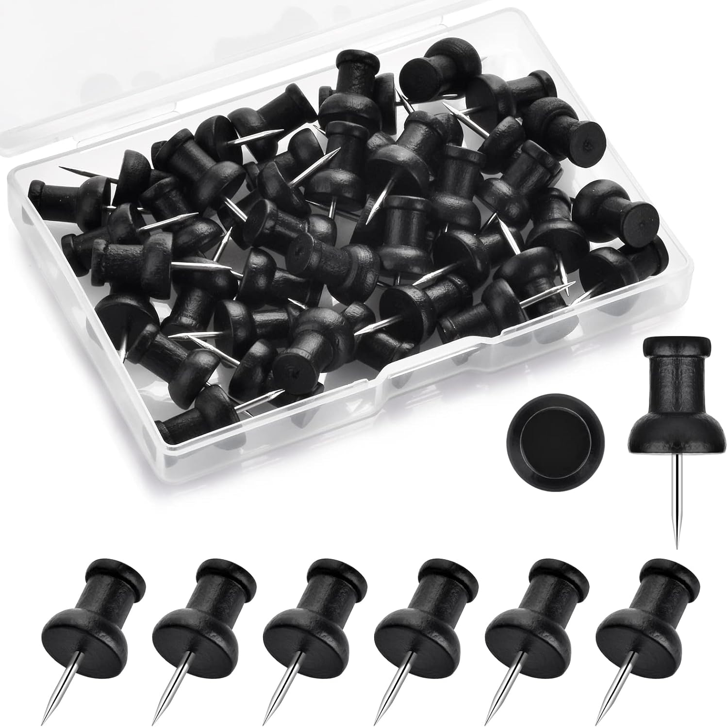- These wood push pins packaged in a small transparent square box, portable to store and organize, keep well-regulated for your desk and drawer.