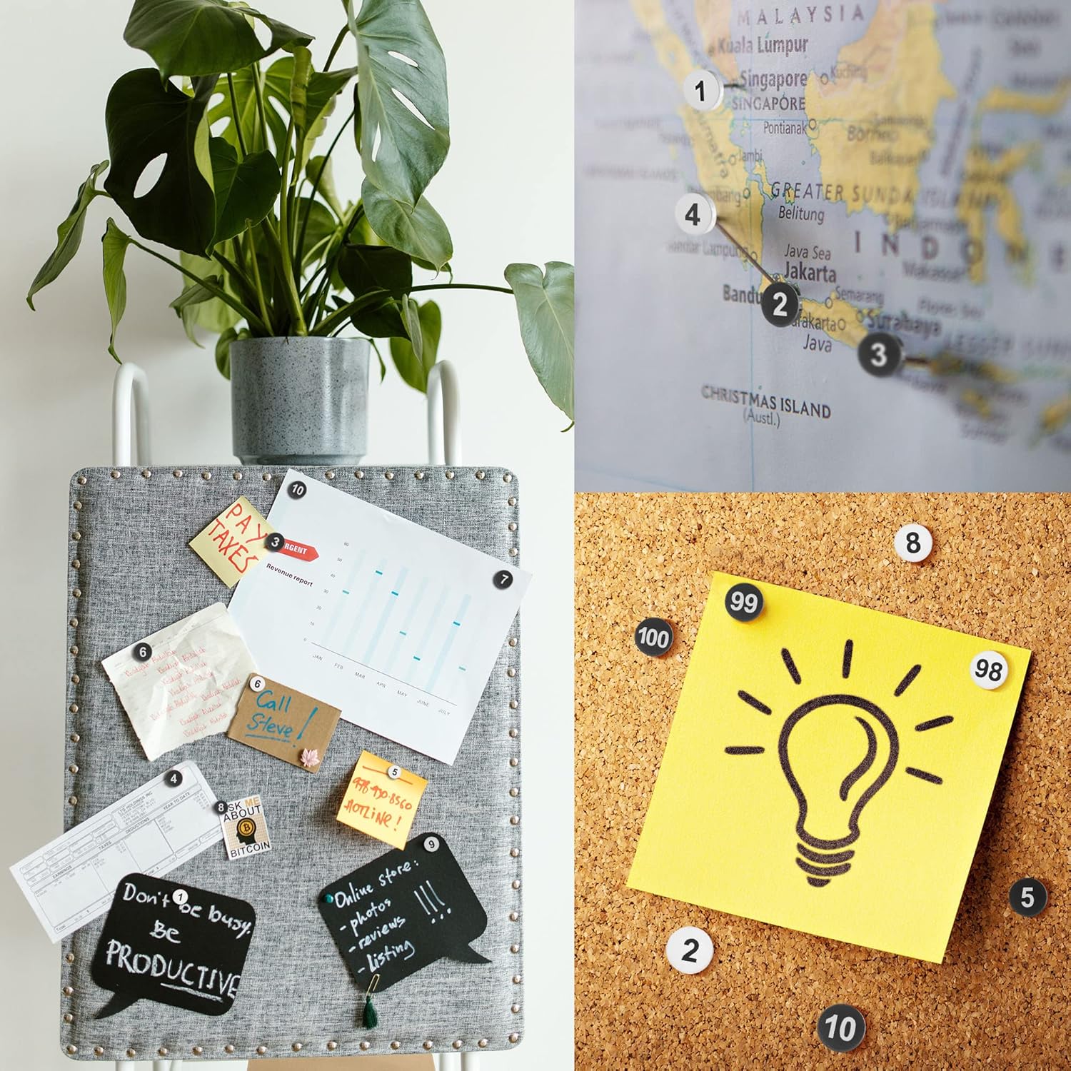 - 【Features】Our thumb tacks are uniquely numbered from 1 to 100, making it convenient for counting or organizing. Available in both black and white, they cater to different needs. Furthermore, the numbered push pins are neatly stored in a reusable clear container case. This not only keeps your desktop or desk drawer organized but also ensures the safety of young children by preventing their access to the thumb tacks.