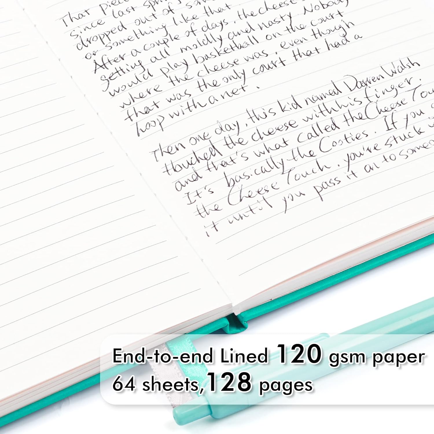 - Feela 12 Pack Classic Ruled Notebooks contains 12 aqua ruled sturdy cover notebooks and 12 Black Retractable Pens. Each of the notebooks measures 8.3” x 5.1”, which is perfect to carry and easily held by young girls and boys. These black cute pens are customized to be placed in the pen holder, which is pretty convenient.
