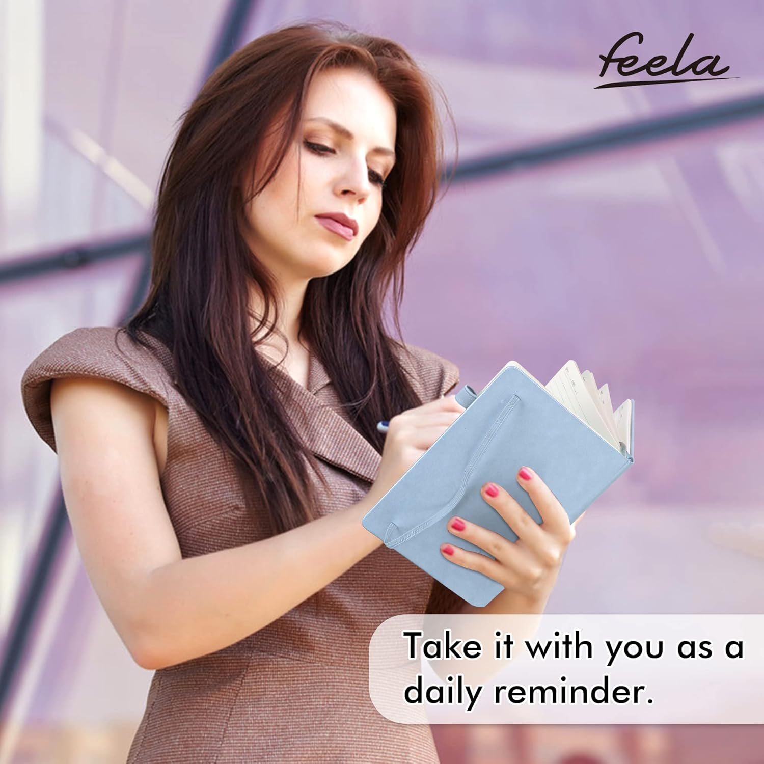 feela 18 Pack Journal Notebook for Work, Business Notebook Bulk Hardcover Lined Writing Journal with Pen Holder for Men Women Note Taking, with 18 Black Pens, 120 GSM, 5.1”x8.3”, A5, Light Blue