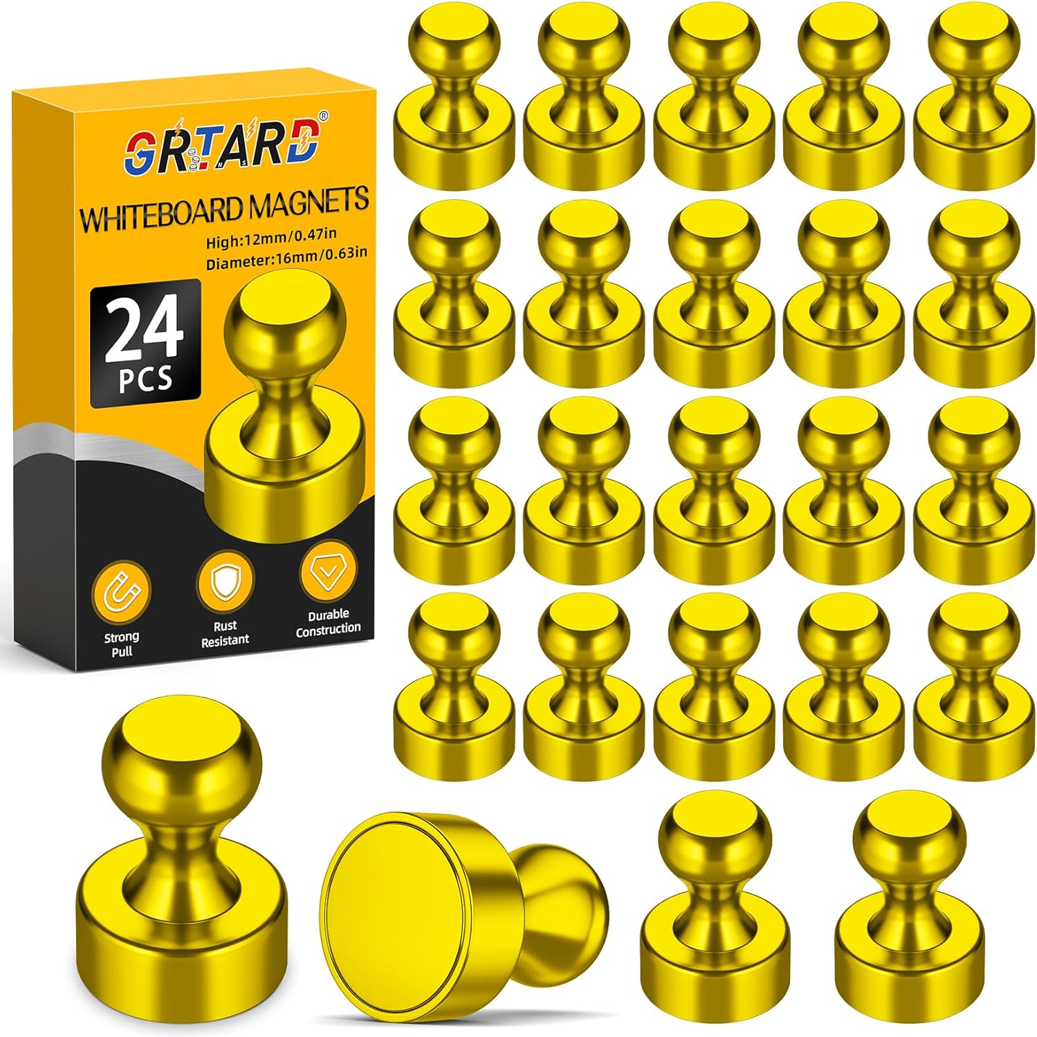 Grtard 24 Pack Magnetic Push Pins, Fridge Magnets for Whiteboard, Whiteboard Magnets Refrigerator Magnets, Small and Strong Push Pin Magnet for Office, School, Locker, and Map Magnet