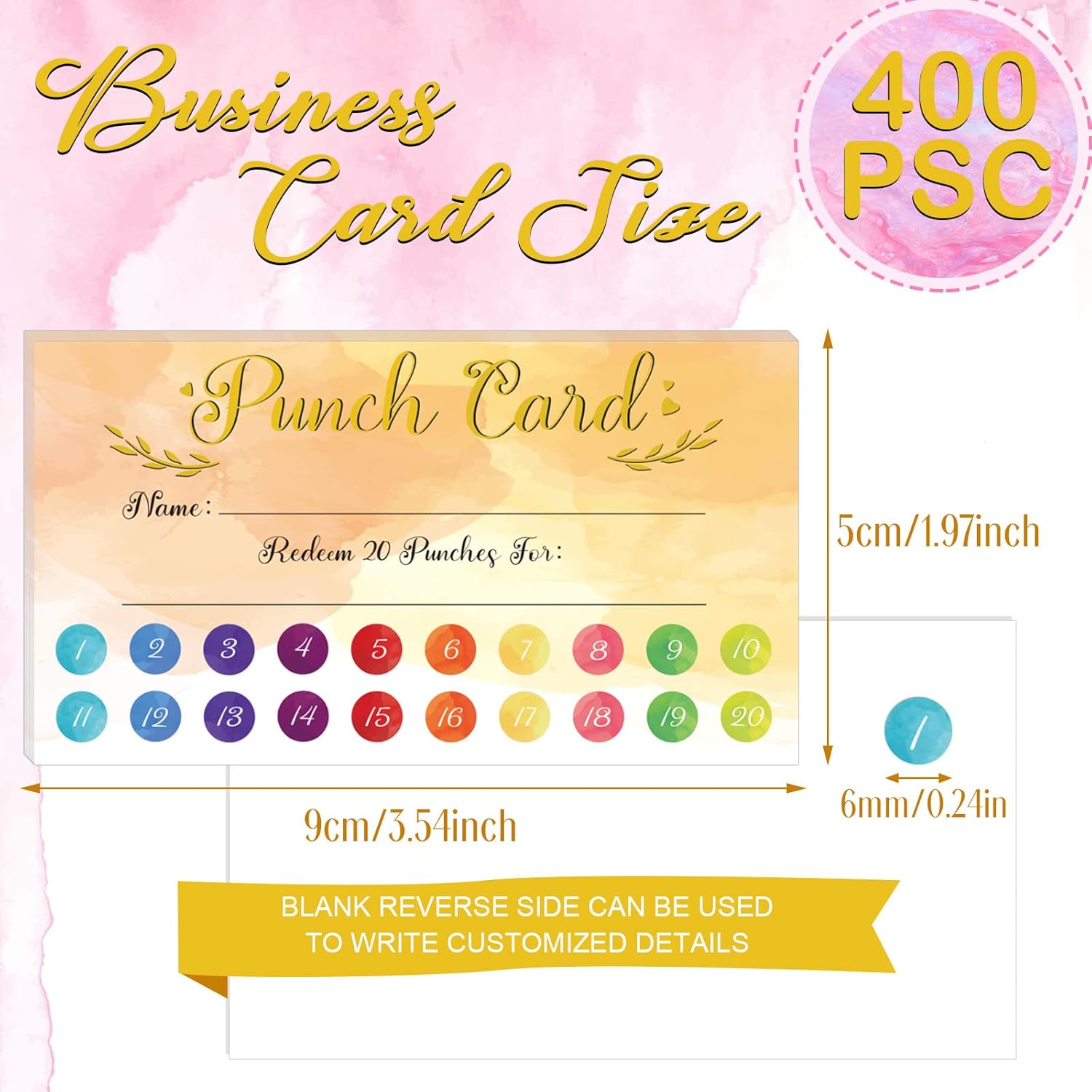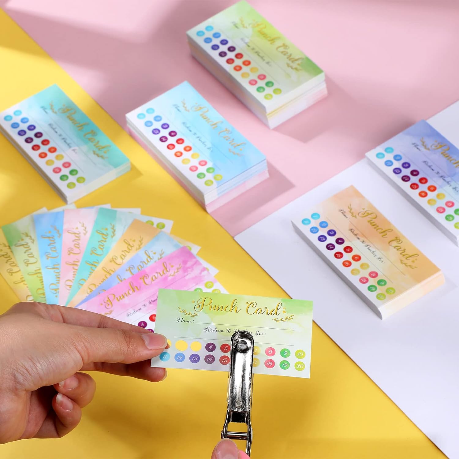Fumete 400 Pcs Punch Cards for Classroom Reward Cards Behavior Incentive Loyalty Awards for Kids Students Teachers School Business, 8 Styles, 3.5 x 2 in(20 Watercolor Punches Style)
