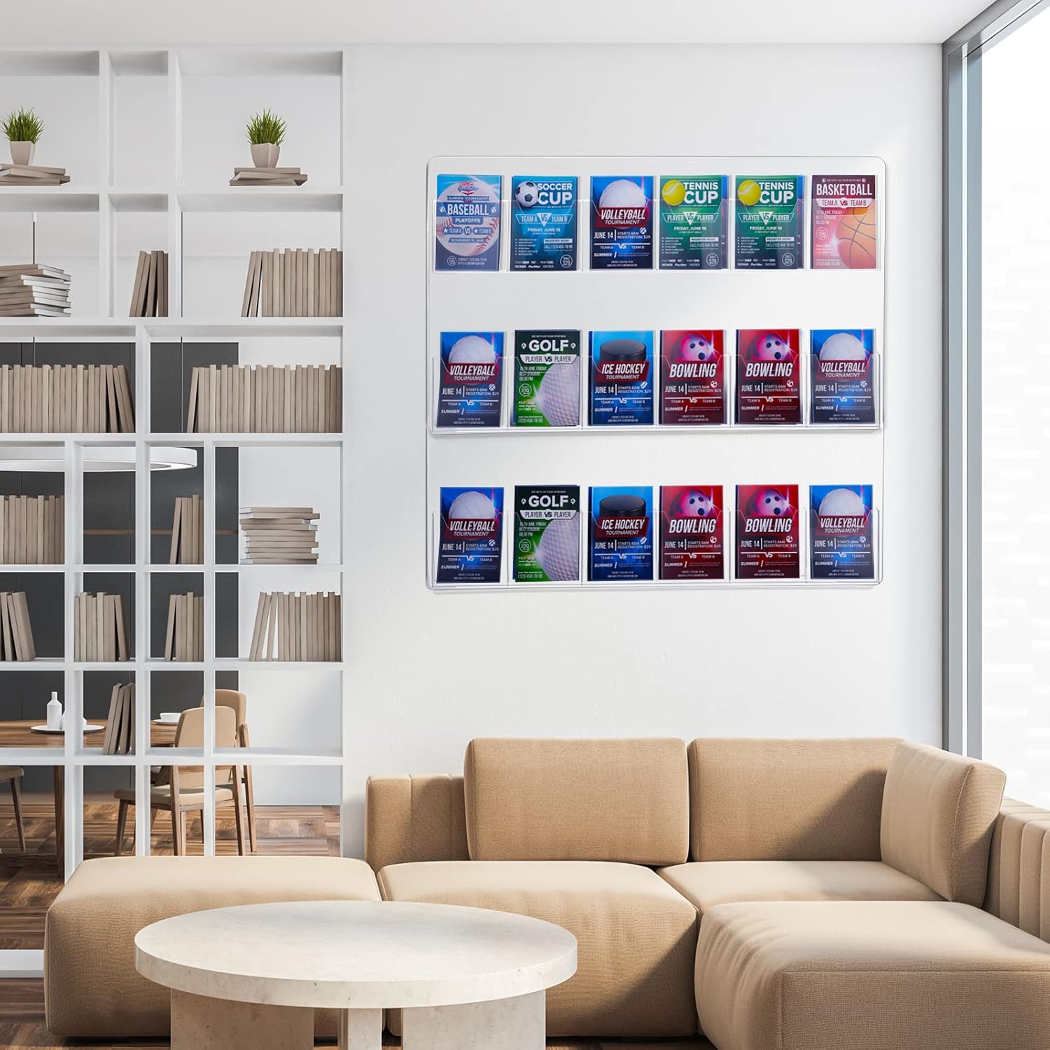 Eersida 2 Pack Acrylic Brochure Pamphlet Holder Wall Mount Clear Brochure Display Holder Plastic Trifold Flyer Rack Literature Storage Rack for Offices Waiting Room (18 Pockets, 25 x 22 Inch)