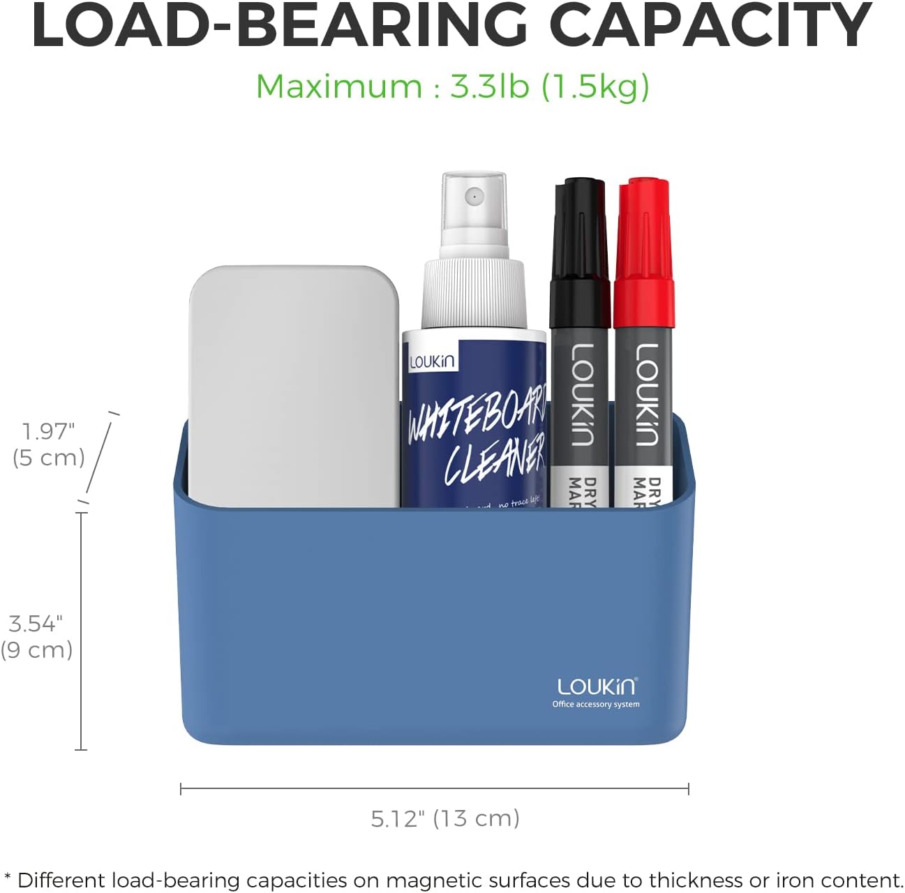 - SUPER LOAD BEARING: Secure magnetic storage organizer for whiteboards with a maximum loadbearing of capacity 3.3 lb (1.5kg).