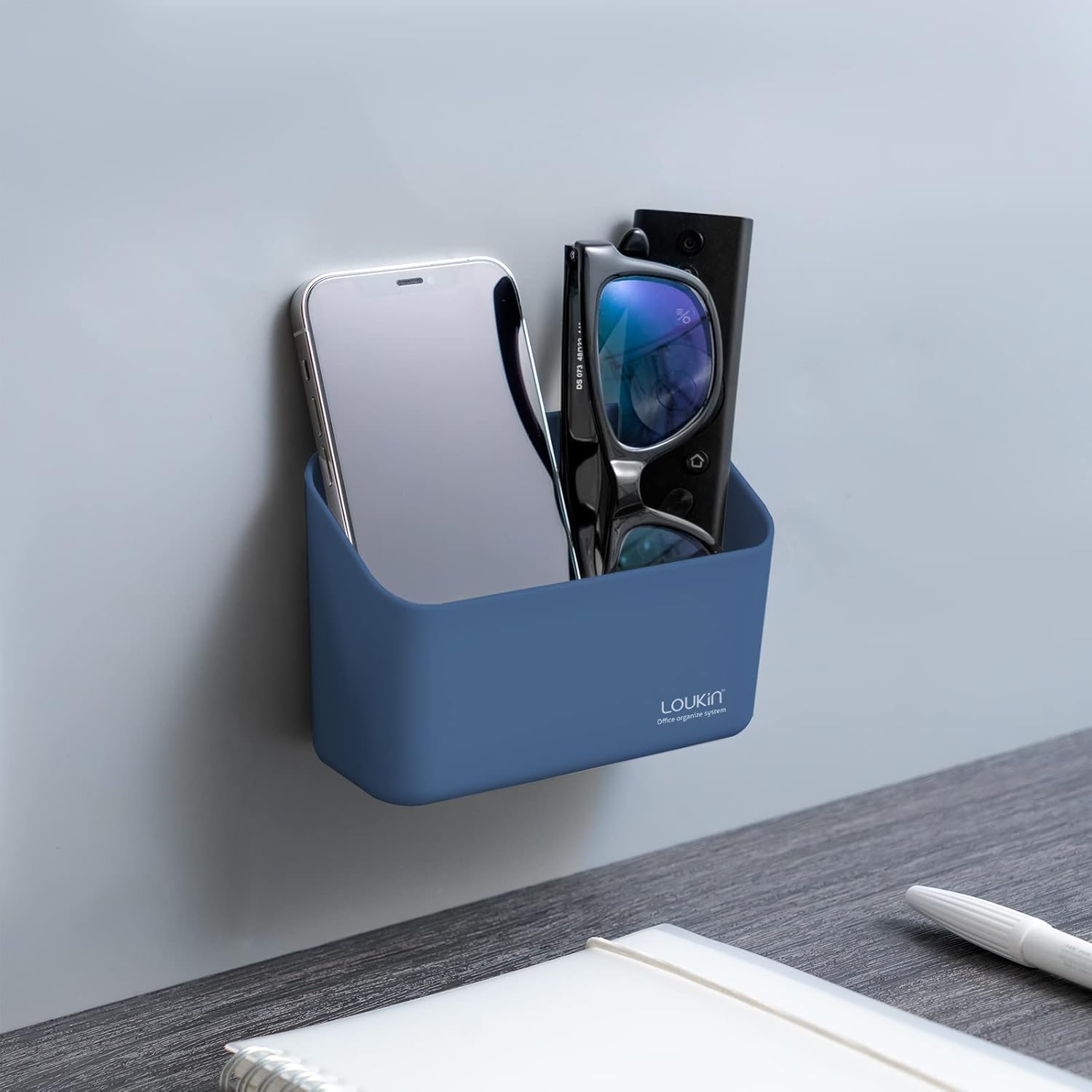 loukin Magnetic Marker Holder, Dry Erase Marker Holder, Remote Control Holder, Magnetic Storage Organizer for Whiteboard or Refrigerators (Blue)