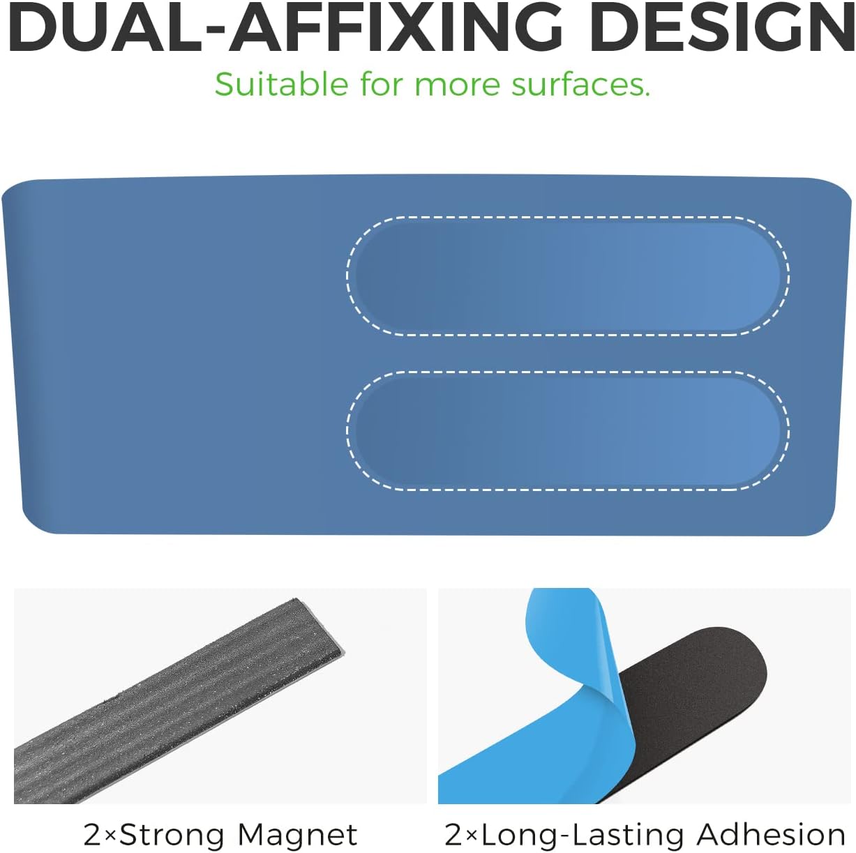 - DUAL AFFIXING DESIGN: Dry erase accessory tray with optional magnetic and adhesive stickers. Easily attaches to magnetic surfaces such as whiteboards and refrigerators with magnetic sticker and various nonmagnetic surfaces with adhesive one, too.