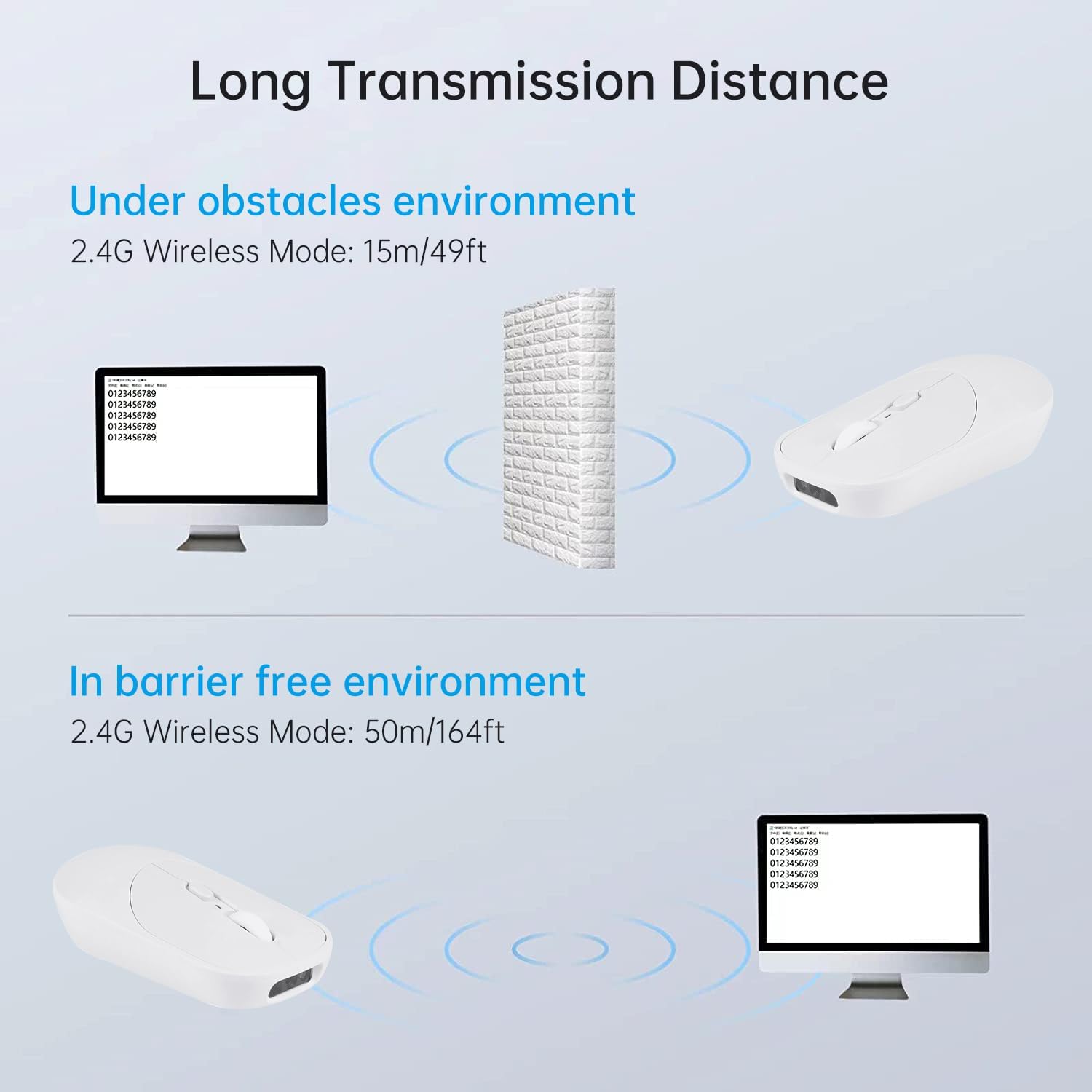 New Wireless Mouse Barcode Scanner, 2-in-1 Design 2D Handheld Barcode Scanner with Wireless Mouse Functions for POS System,Store,Supermarket, Warehouse.(White)