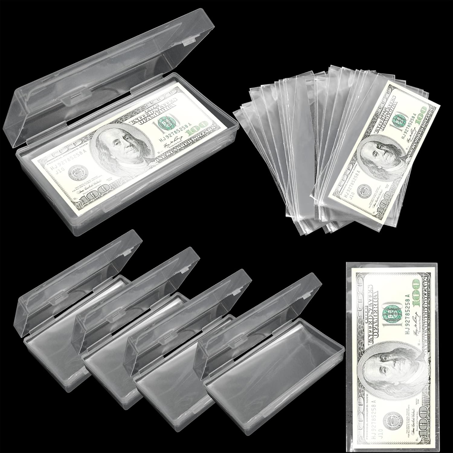 - Package Includes: 5 Pack Currency Sleeves Storage Case Size: 18.5x9.5x4.2 CM/7.3x3.7x1.65 inch, 500 pcs dollar bill holder, can be a good protection of banknotes and display your collection