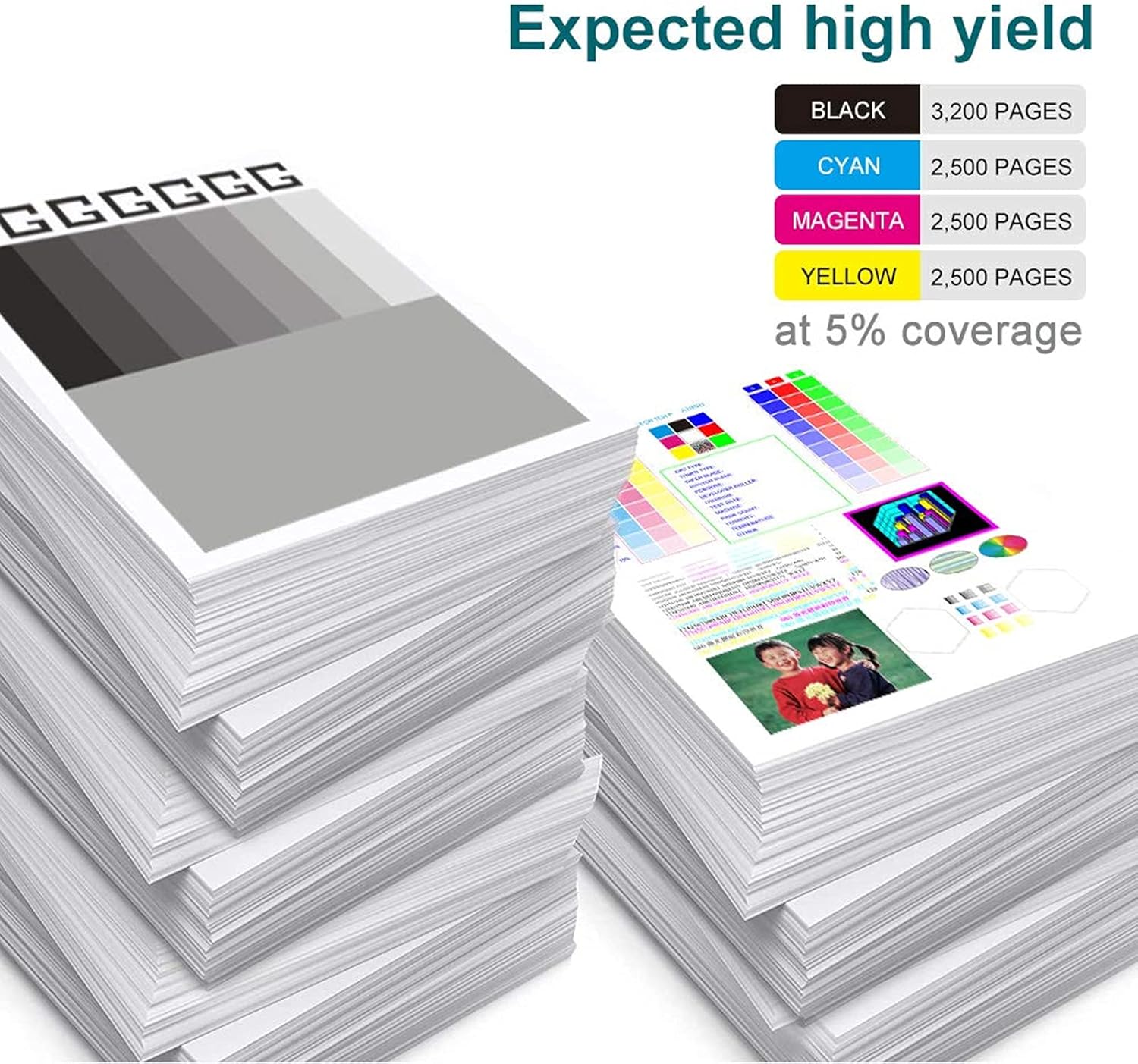 - High Yield: Up to 3200 pages per 202X CF500X black toner cartridge and 2500 pages per color CF501X CF502X CF503X toner cartridge (at 5% coverage may vary by type of use)
