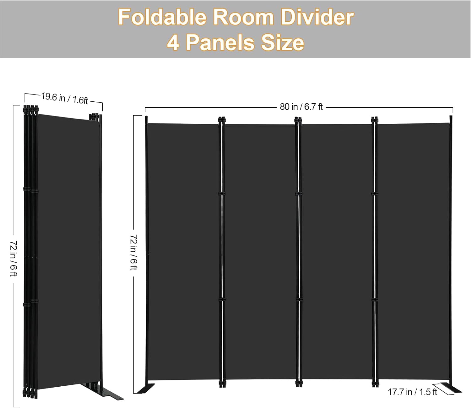MAYOLIAH 4 Panel Room Divider Screen 6Ft Tall Foldable Privacy Dividers Indoor Wall Partition Room Separator Black