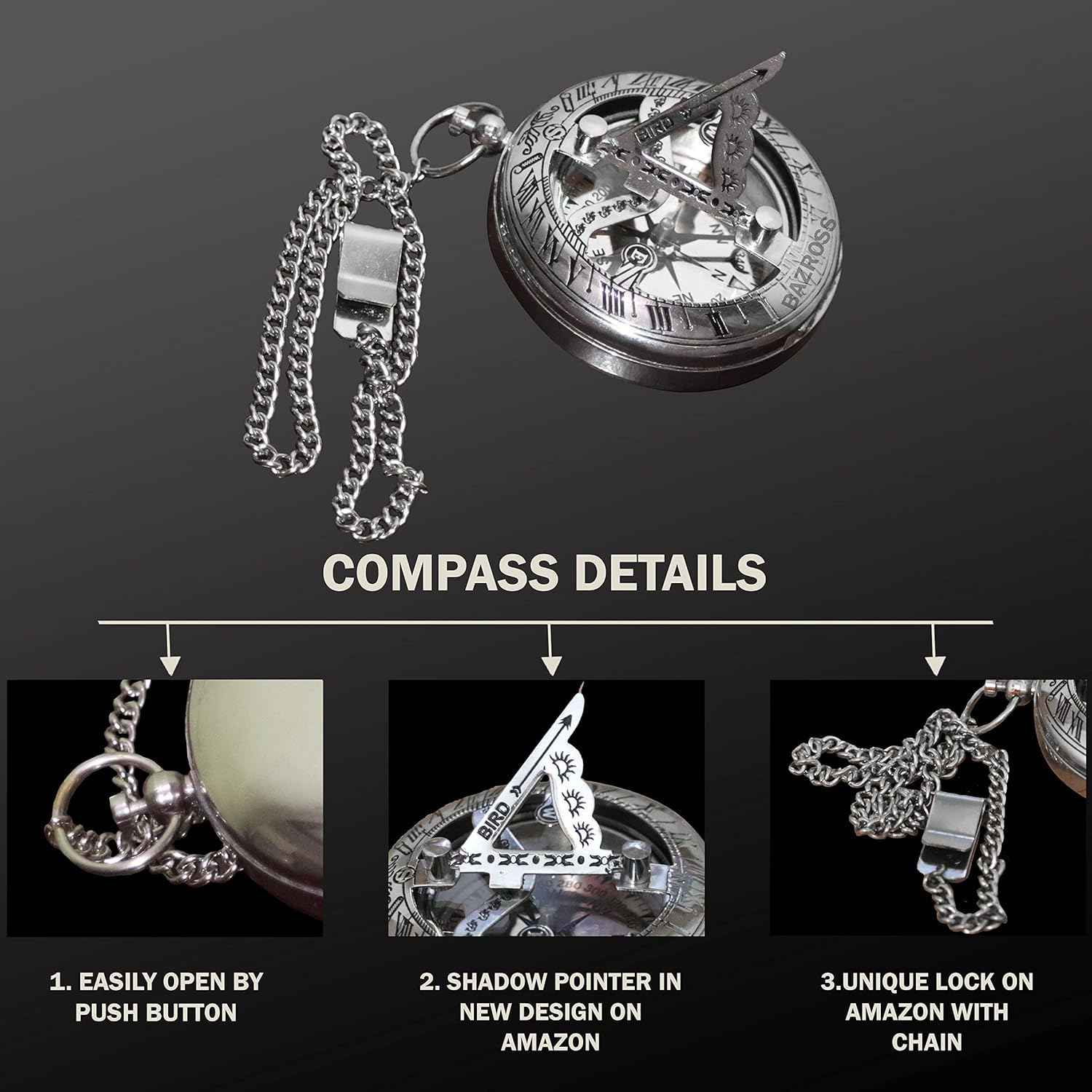- Functional Elegance: Silver brass finish and high-quality craftsmanship make this pocket sundial compass a functional and elegant addition to any antique dΓ©cor collection