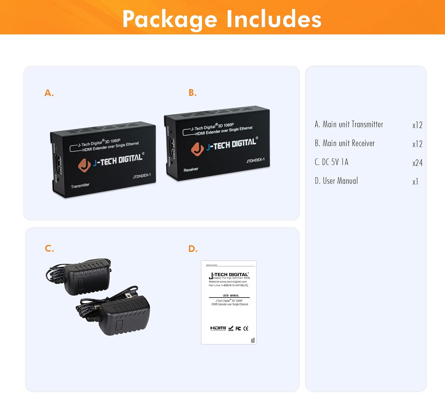 ![J-Tech Digital HDMI Extender 1080P 60Hz Over Single CAT 5e/6 Up to 200ft. | Deep Color, EDID Copy, Zero Signal Loss | Pack of 12 [JTDHDEX-1]](http://the-supplysphere.com/cdn/shop/files/61rZ5f-VMfL._AC_SL1500.jpg?v=1761304677&width=1445)