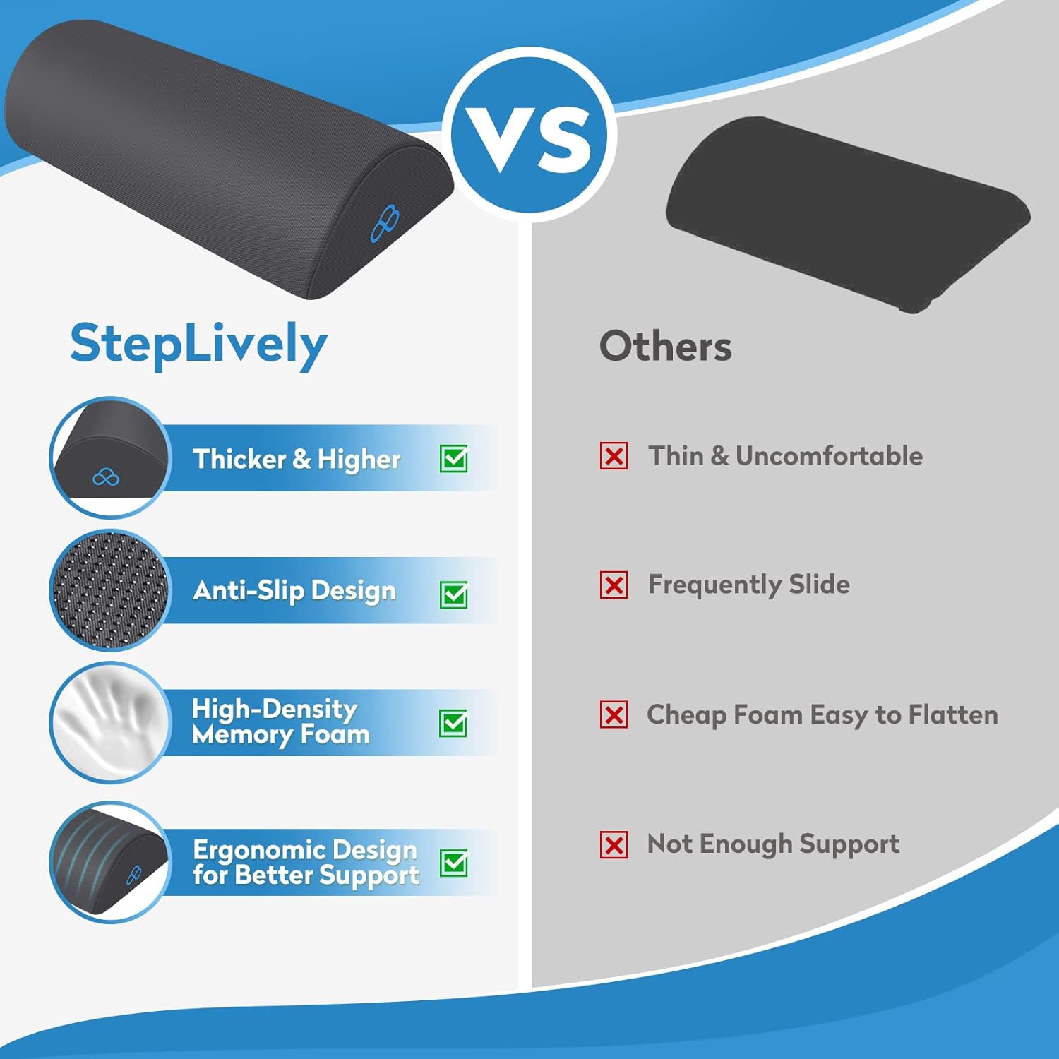 - Under-Desk Pillow: Foot rest pillow loved by office worker, game player, and students who sitting for all-day. Provide great support to relieve legs and feet pain and fatigue through raising your feet to better fit a unsuitable seat