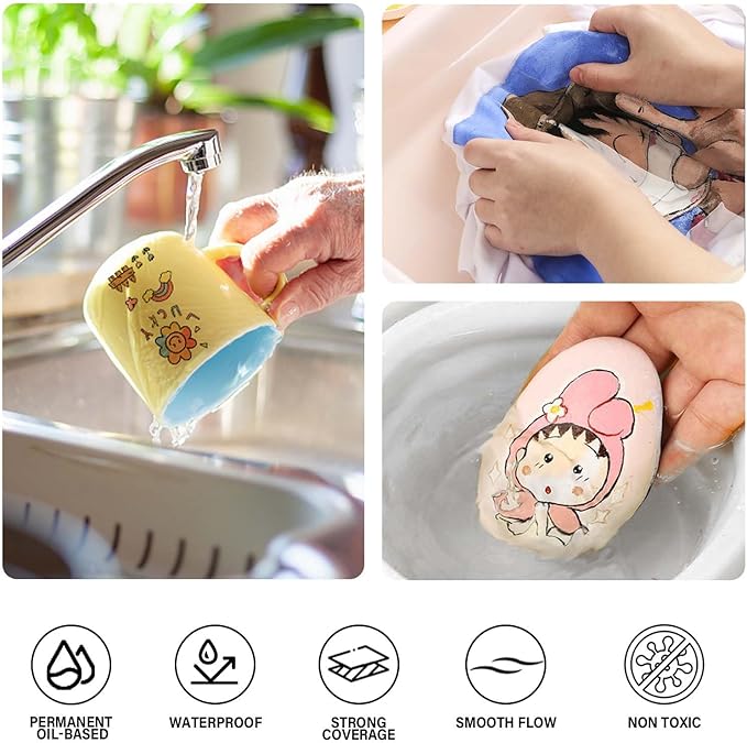 - 【Work Well on Diverse Surface】Betem acrylic markers provides smooth inking for a variety of surfaces such as paper, cardstock, metal, rock painting, wood, plastic, canvas, fabrics, ceramics, and more. High-quality opaque water-based ink with odorless and acid-free. Keep your artwork colors alive for a long time. Just express your imagination!