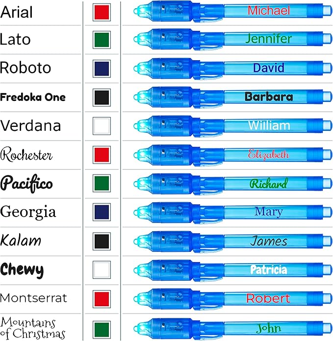 - GREAT GIFT FOR FUN PARTY FAVORS: These Personalized Invisible Spy Pens come in a pack of 24 Blue Pens to make the activity more exciting and fun.The color of the light is blue and it will display the words written in clear ink for all pens. Batteries are included and installed. Parents can buy these Spy Pens for their kidβs party at home. Schools, Teachers can buy it for students for a school Activity. Add it for any surprise gift bag or as Stock Stuffers.