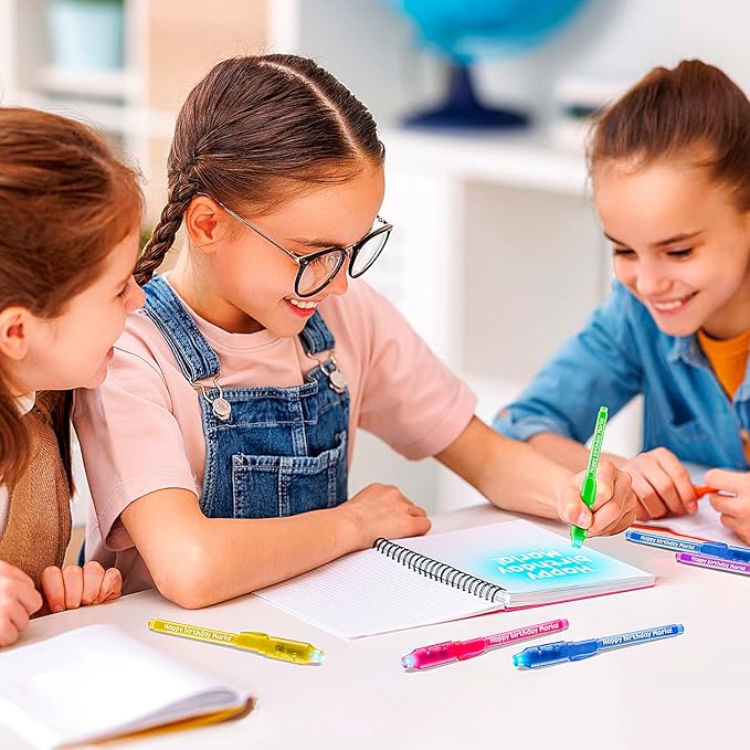 - GREAT GIFT FOR FUN PARTY FAVORS: These Personalized Invisible Spy Pens come in a pack of 24 Green Pens to make the activity more exciting and fun.The color of the light is blue and it will display the words written in clear ink for all pens. Batteries are included and installed. Parents can buy these Spy Pens for their kidβs party at home. Schools, Teachers can buy it for students for a school Activity. Add it for any surprise gift bag or as Stock Stuffers.