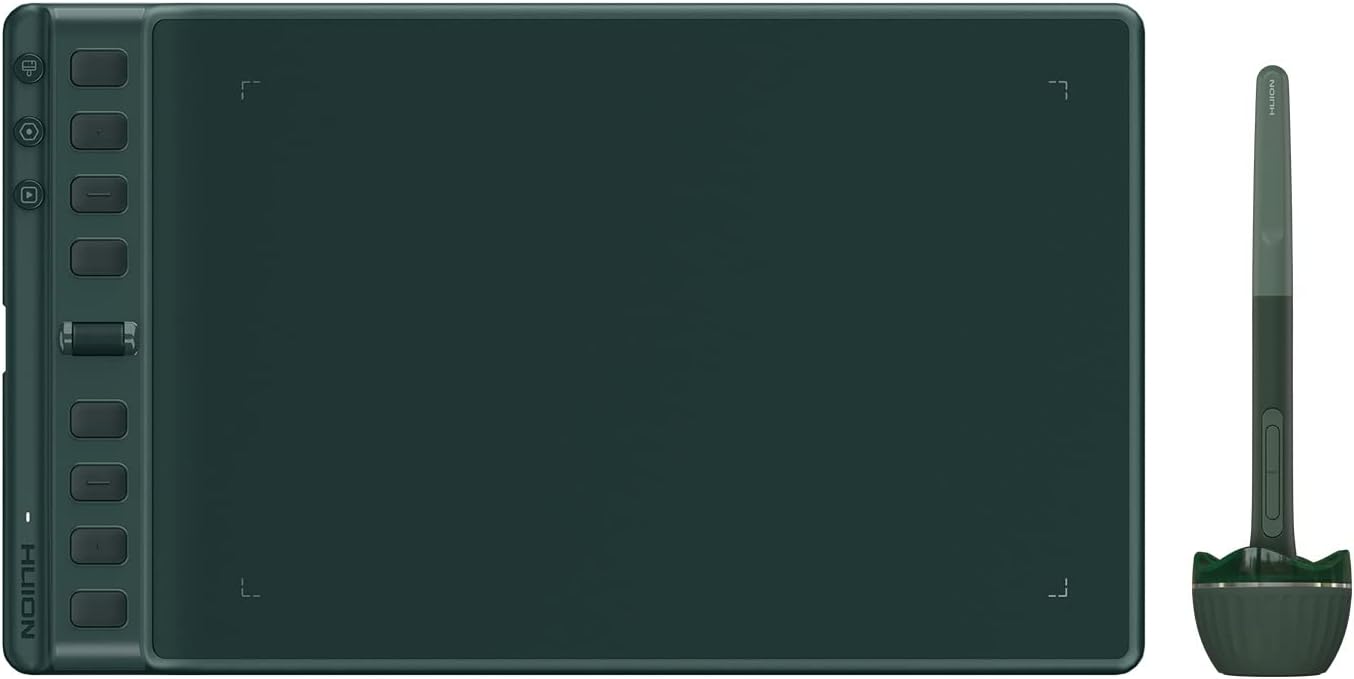 HUION Inspiroy 2 Medium Drawing Tablet with Scroll Wheel 8 Customized Keys Battery-Free Stylus for Digital Art, Design, Sketch, 9x5inch Graphics Tablet Works with Mac, PC & Mobile, Green