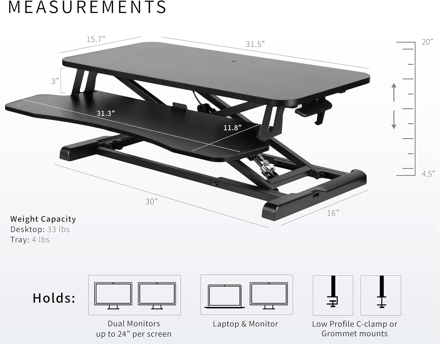 - Create Instant Active Standing: VIVOβs desk riser provides on-demand standing throughout the day for the freedom to get out of your chair and relieve muscle tension, reduce stress, and increase productivity --Patented--