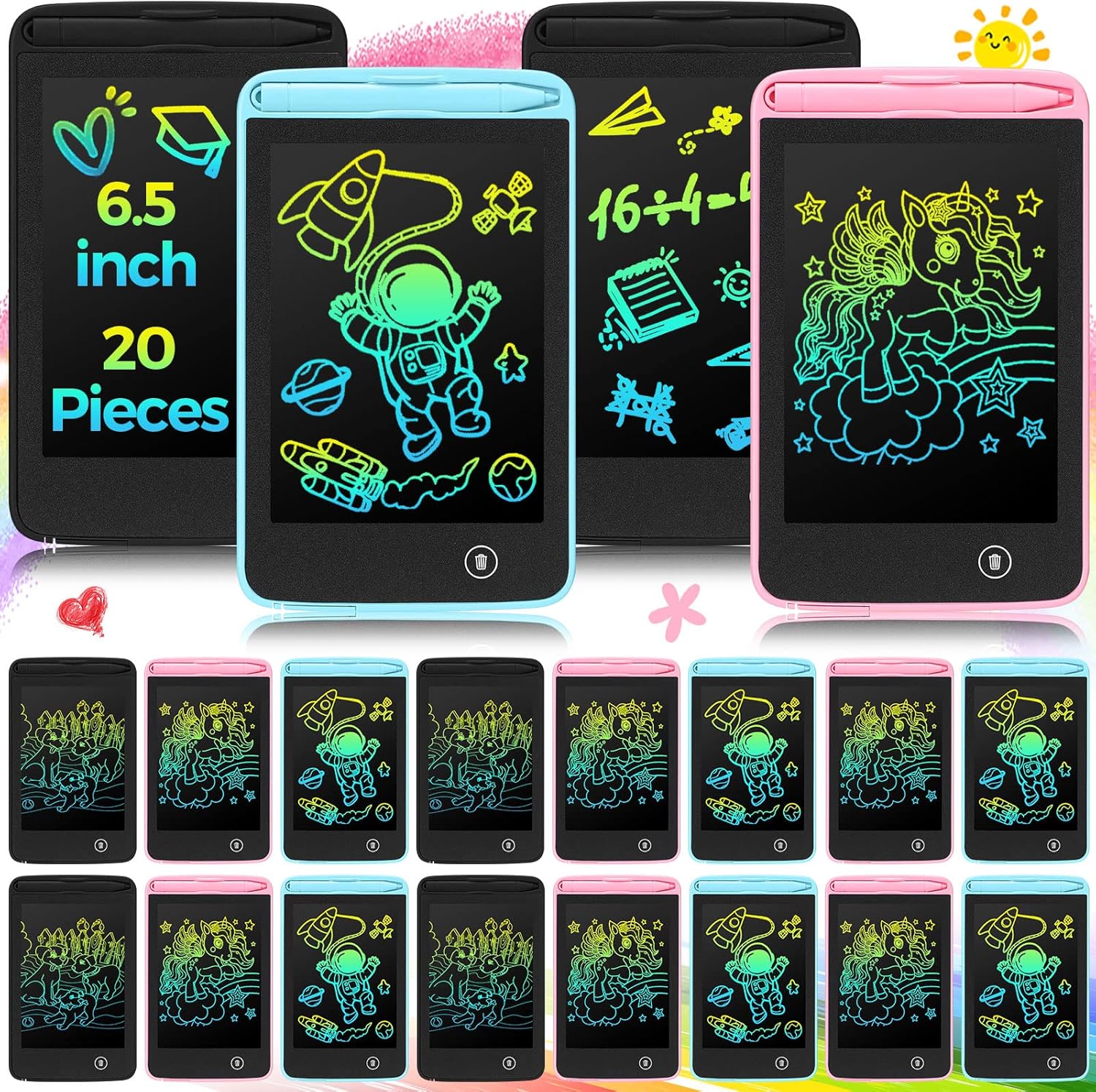 Zhehao 20 Pcs LCD Writing Tablet for Kids 6.5 Inch Colorful Doodle Board LCD Writing Board Kids Portable Electronic Drawing Board Erasable Drawing Pad Reusable Writing Pad for Kid (Black, Blue, Pink)