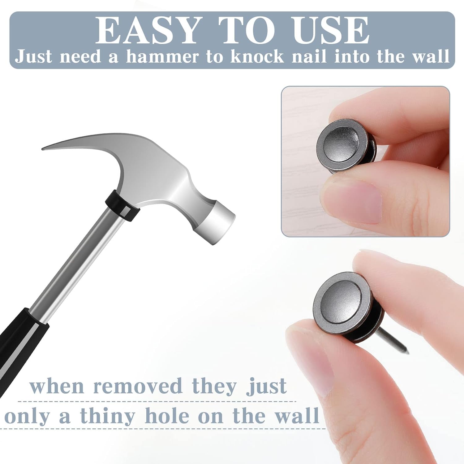 - Easy to Use: these wall tacks are suitable for wooden walls and drywall, and you can fix the photo hooks on the wall with a small hammer (not included); In addition, these hanging nails will only leave a small nail hole after removal, which will not ruin your wall or affect the beauty of the whole house