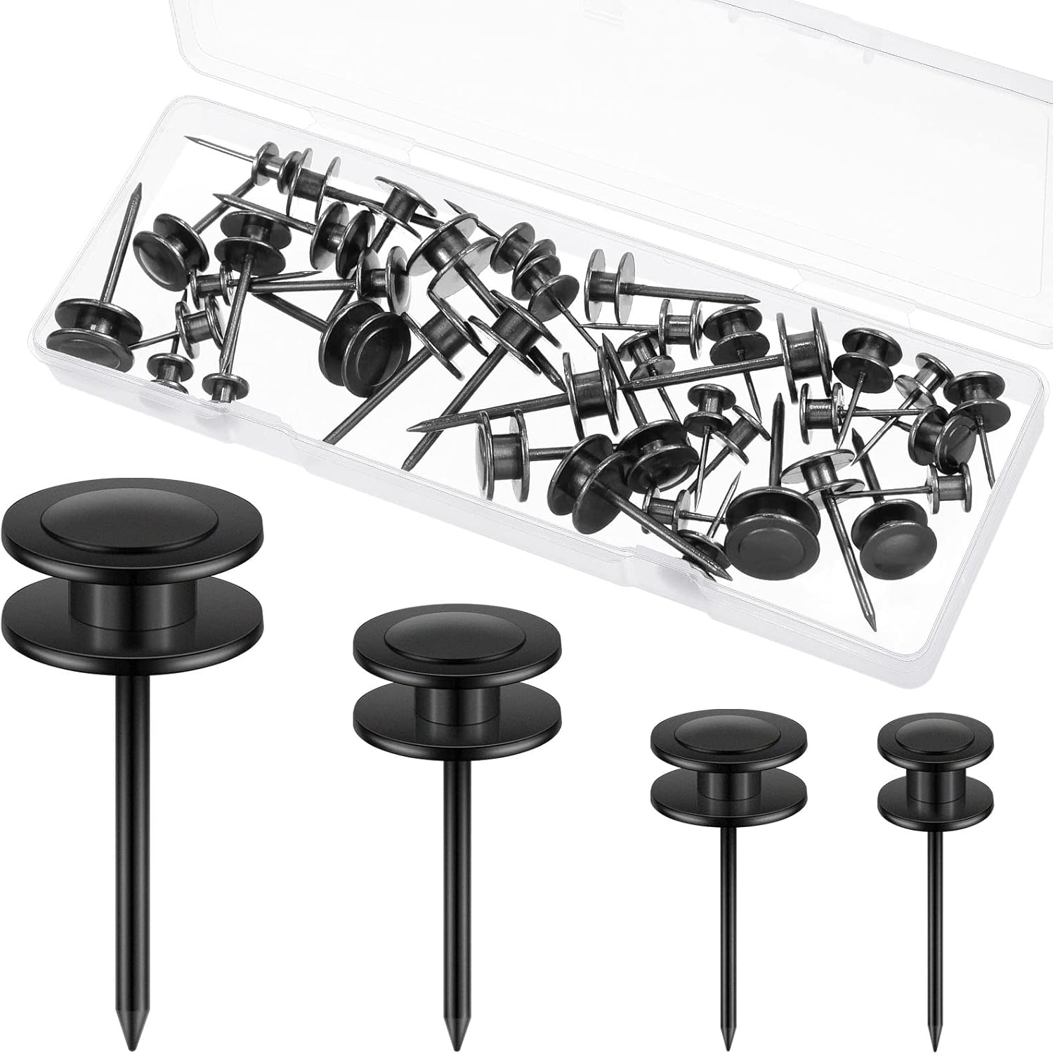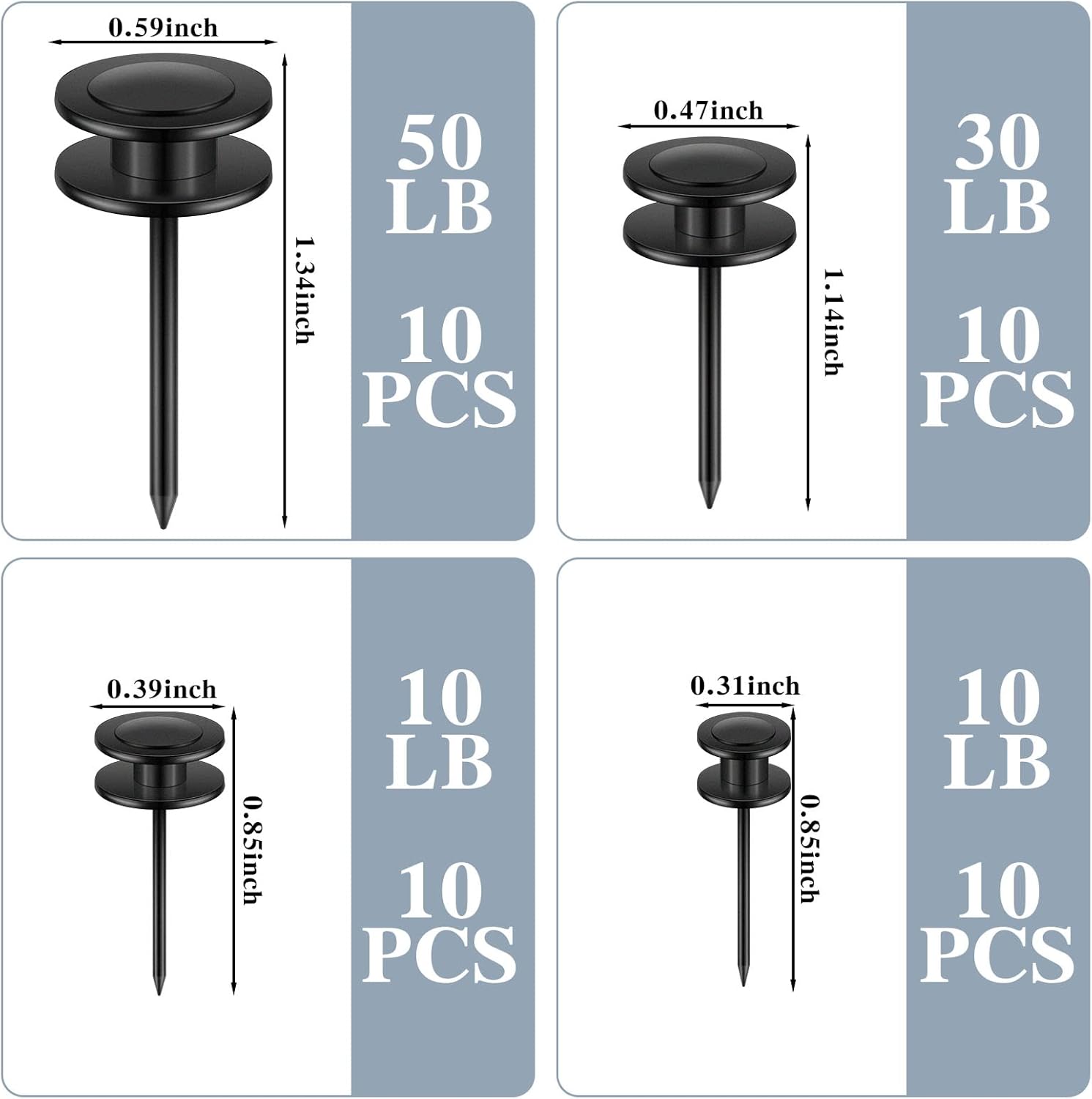 Ferraycle 40 Piece Double Headed Picture Hangers Nails 4 Size Long Thumb Tacks for Wall Hanging Decorative Nails Push Pins Picture Hooks for Drywall Photo Decor, 10/20/ 30/ 50lb(Black)