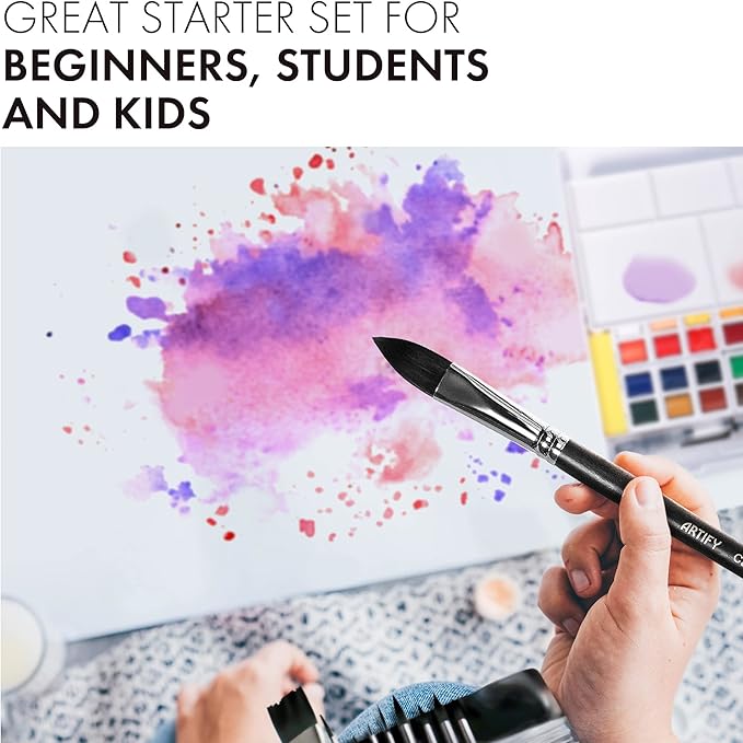 ARTIFY 12 PCS Watercolor Brushes Set, Synthetic Paint Brushes for Watercolor Painting, Acrylic, Gouache & Oil Painting - Detail Paint Brushes, Round, Flat, Cat's Tongue,Liner for Beginners & Kids