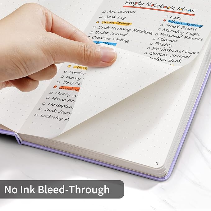 - Multifunctional Cover: The hard cover is made of vegan leather, and designed with a pen loop, an elastic band, two ribbon page markers, an expandable inner pocket.