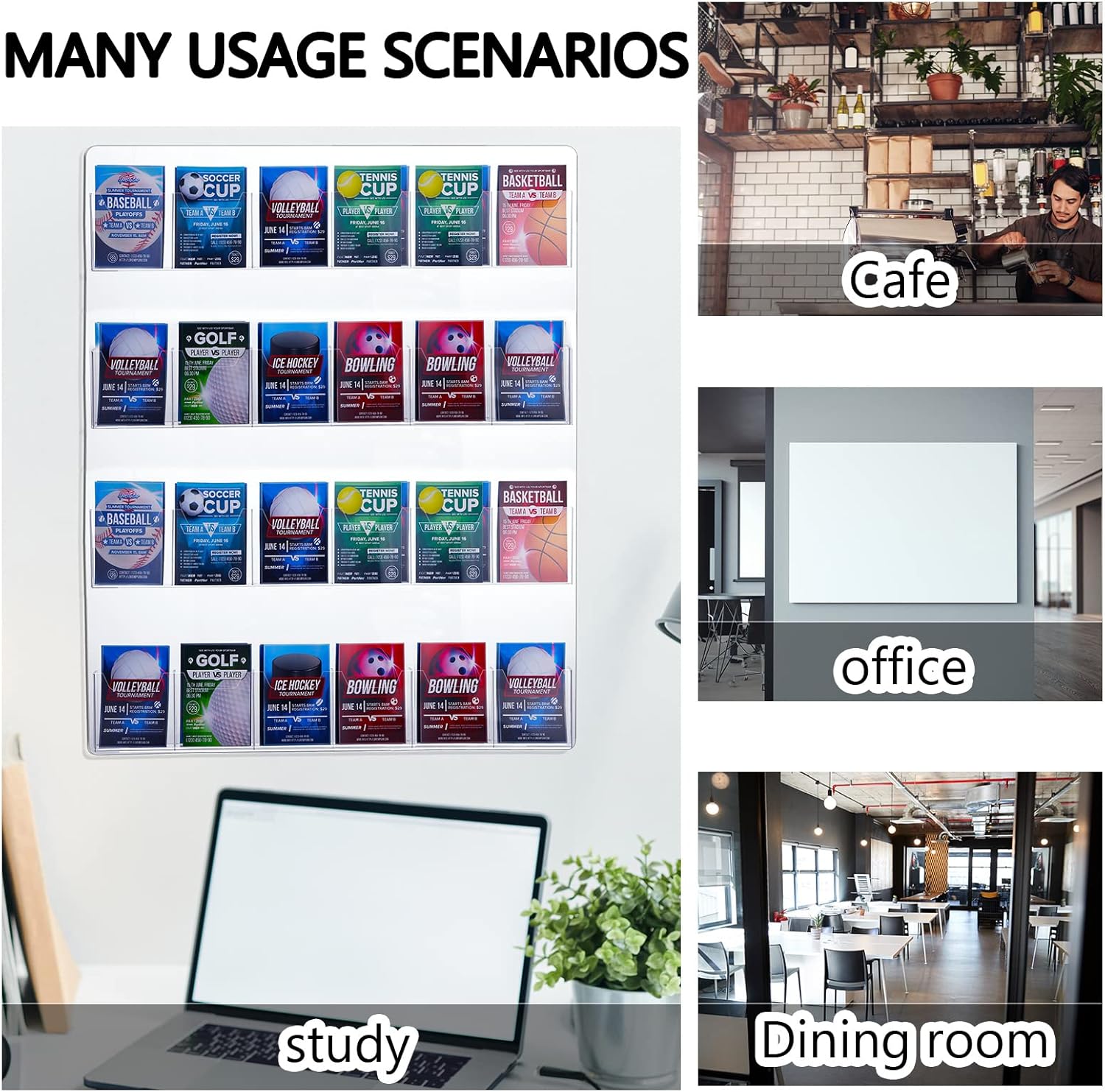 - Suitable Size: the overall dimension of our acrylic brochure wall mount holders is 29.5 x 25.5 inches, each pocket dimension is 4 x 1 inch, and each pocket capacity is approx. 50 postcards, this is a useful business card or gift card wall display solution
