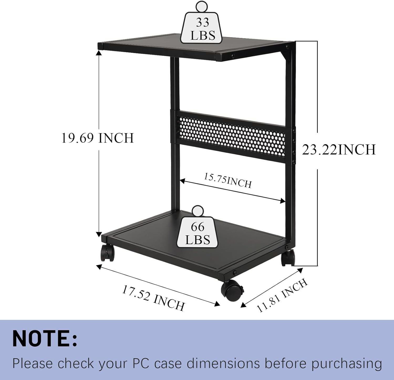 PC Stand Computer Tower Stand 2-Tier Metal CPU Holder with Locking Caster Wheels Suitable for Most PC (S,Black)
