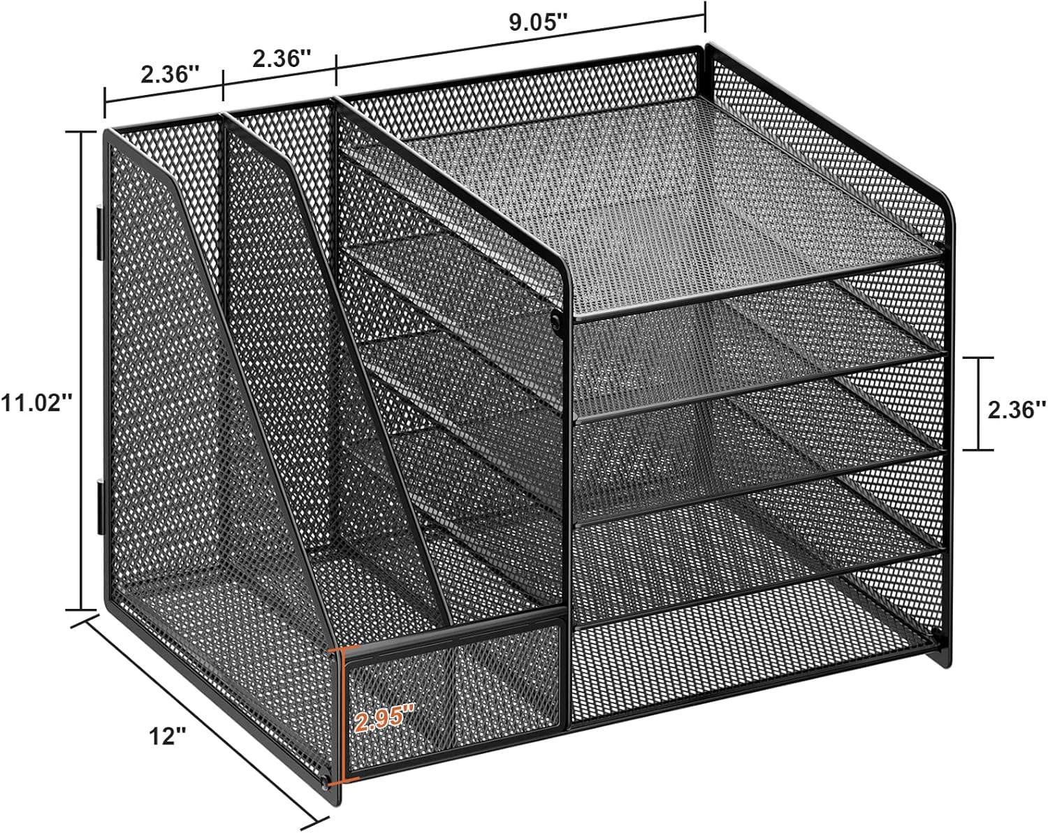 - 【Space Saving】All office document folders would be organized by the vertical file holder. The paper tray organizer is very suitable for storing books, magazines, letters, and A4 paper. The desk organizer enough accommodate all office supply accessories, such as pens, pencils, scissors, and so on. Perfect Size: 13.8*11*12inch
