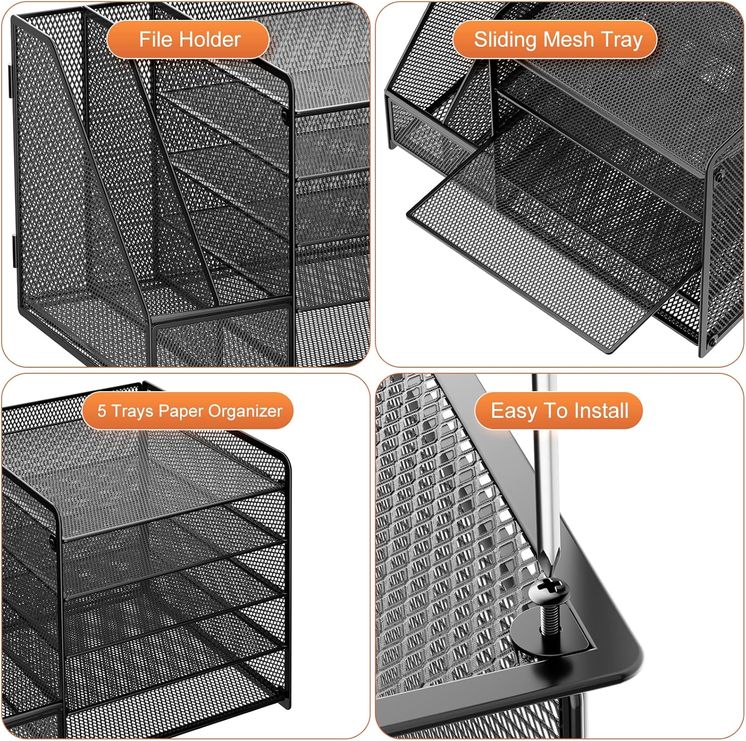 - 【Premium Material】The office supplies desk organizer is made of lightweight durable metal mesh and reinforced with a solid steel frame that makes it have long-lasting strength and reliable performance