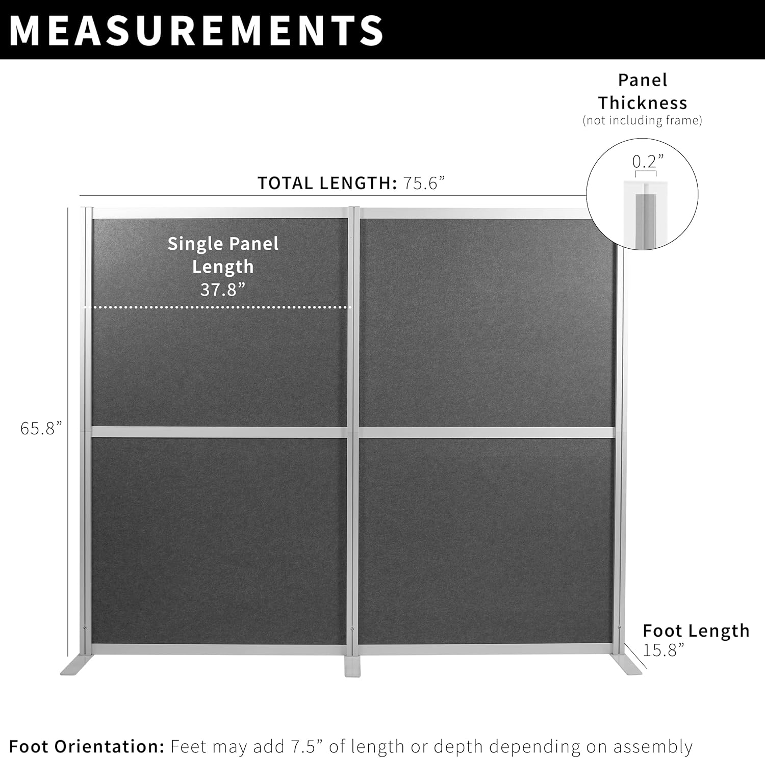 - Freestanding Privacy Panel: Create instant privacy and simple room division with a modern 2 PET panel design (75.6βL x 65.8βH). Aluminum frame and steel feet give solid support (feet add 7.5β of length or depth to overall dimensions depending on assembly)