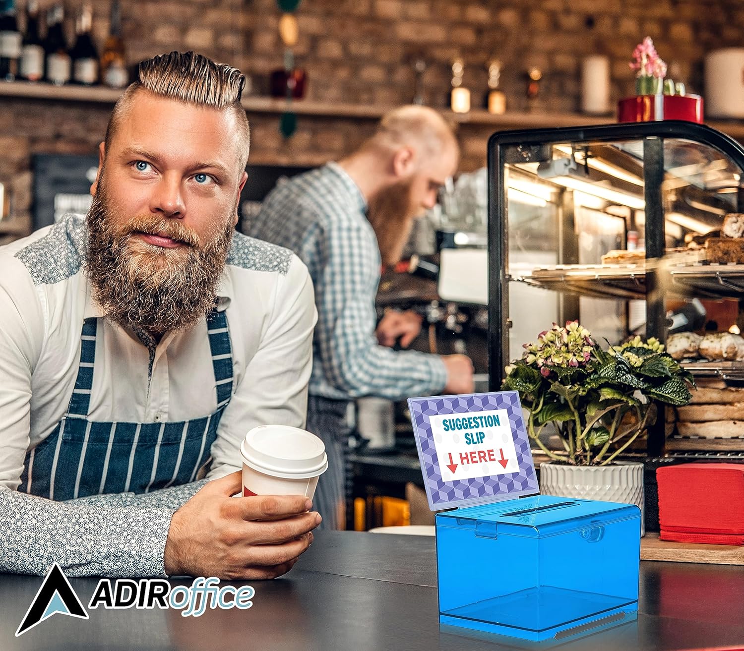 AdirOffice Crystal Blue Acrylic Donation Box with Lock - Multipurpose Suggestion Box for Office, Fundraisers, or School Voting - 6.25x4.5x4 Inches
