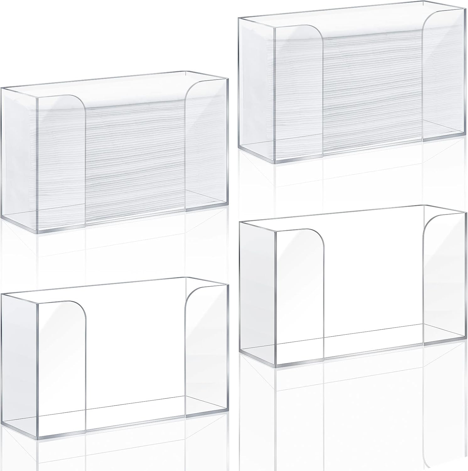 Deekin 4 Pcs Acrylic Paper Towel Dispenser Countertop Paper Towel Holder, Clear Trifold Guest Napkin Dispenser for Z-fold, C-fold or Multifold paper holder for Bathroom Toilet and Kitchen