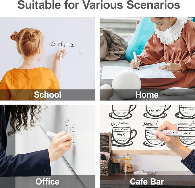 - Quick-Drying and Easy to Erase: The whiteboard markers is perfect for recise writing on non-porous surfaces such as whiteboards, glass, porcelain etc. With water-based ink, it is easy to wipe off without leaving stains and ghosting on whiteboard