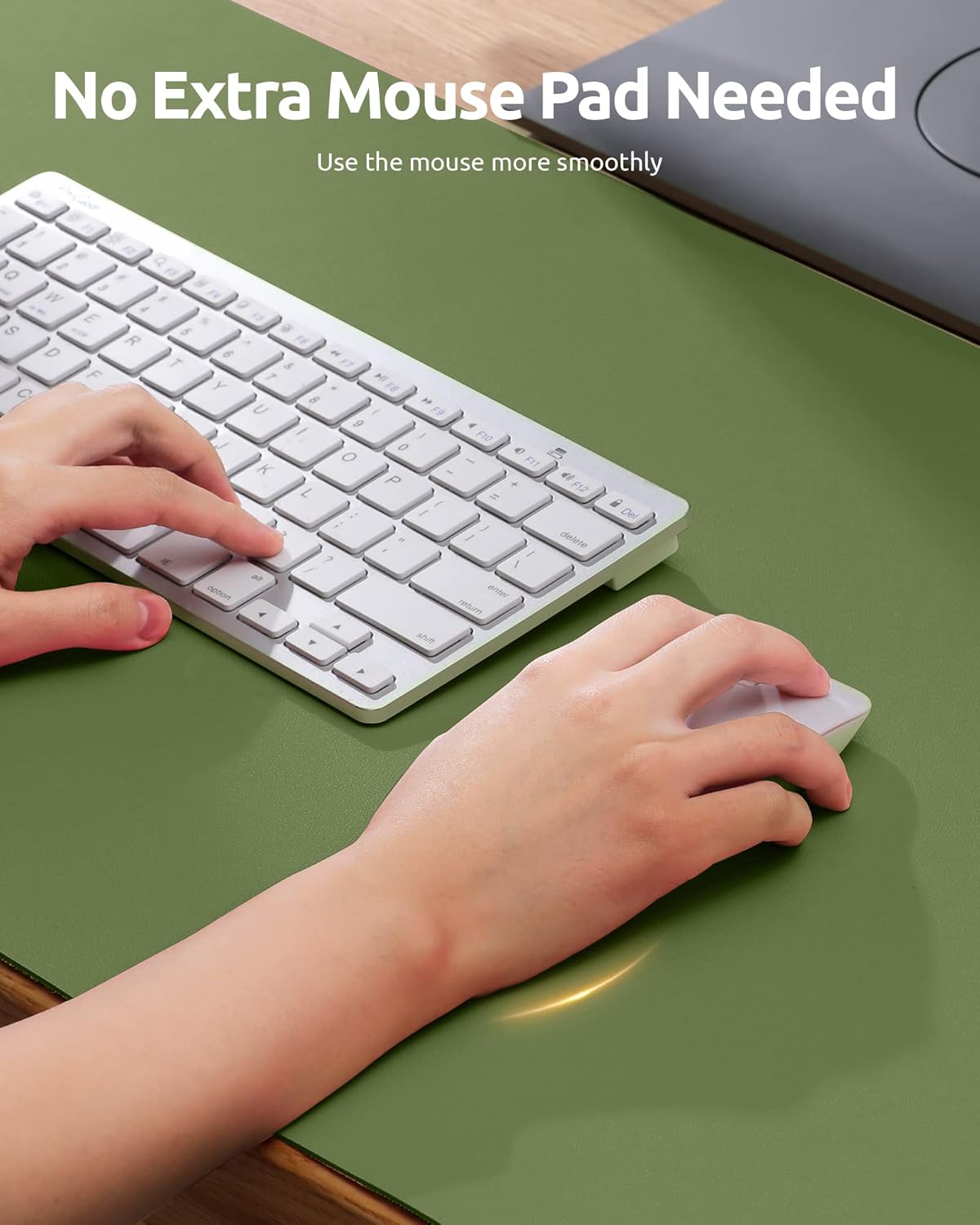 YSAGi Leather Desk Protector, Office Mat, Large Mouse Mat, Non-Slip PU Leather Blotter, Laptop Pad, Waterproof Writing Pad for Office and Home (Green, 35.4" x 17")