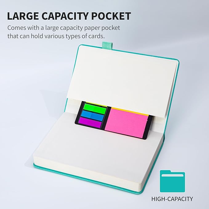 - 🌈【Multifunctional Accessories】⭐This classic 7.6" x 10.3" vegan leather journal features a durable and water-resistant cover, 320 college ruled lined pages, inner expandable pocket, pen holder, ribbon bookmark & elastic closure band