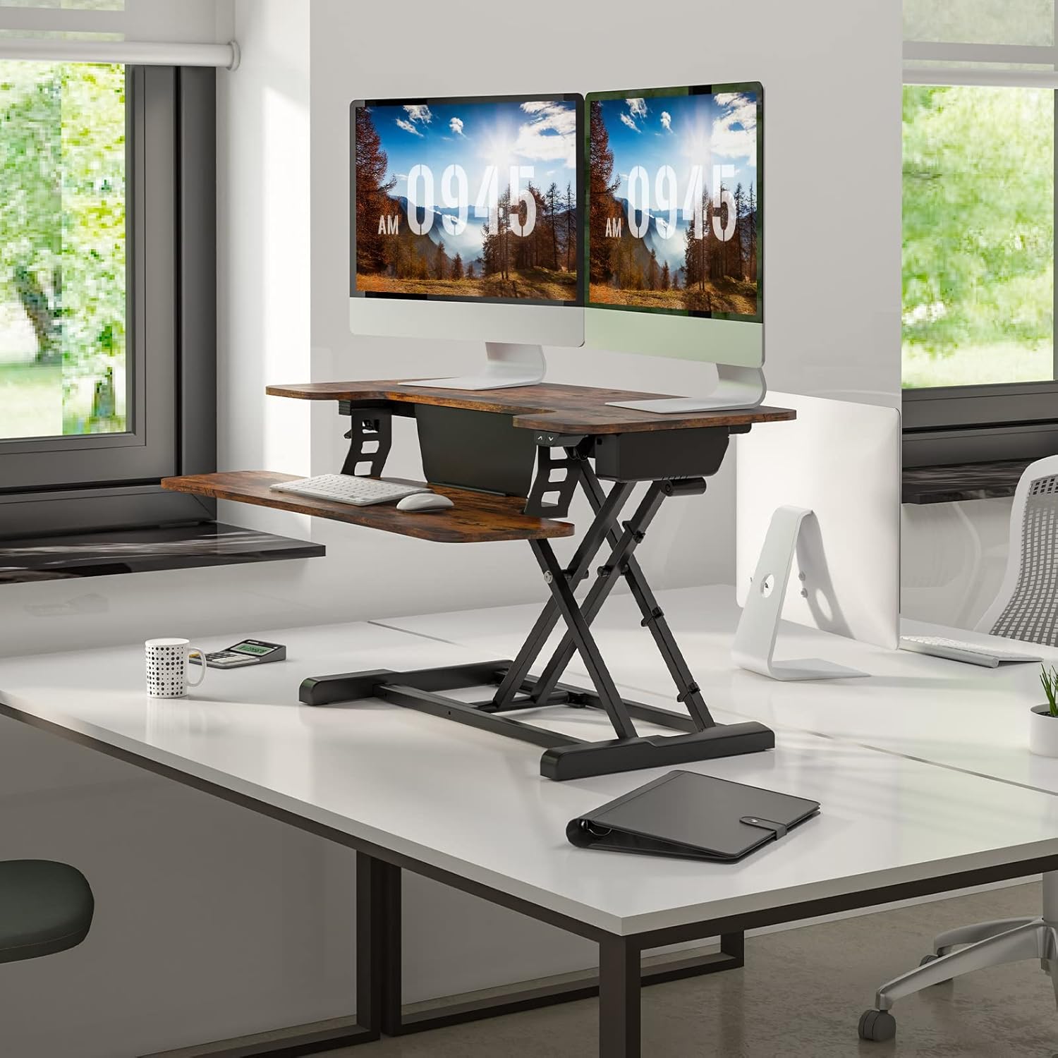 - Heavy-Duty Construction - With a combined weight capacity of 55 pounds (44 lbs. for the desktop, 11 lbs. for the keyboard tray), this standing desk riser can easily support multiple monitors and all the accessories you need to work comfortably.