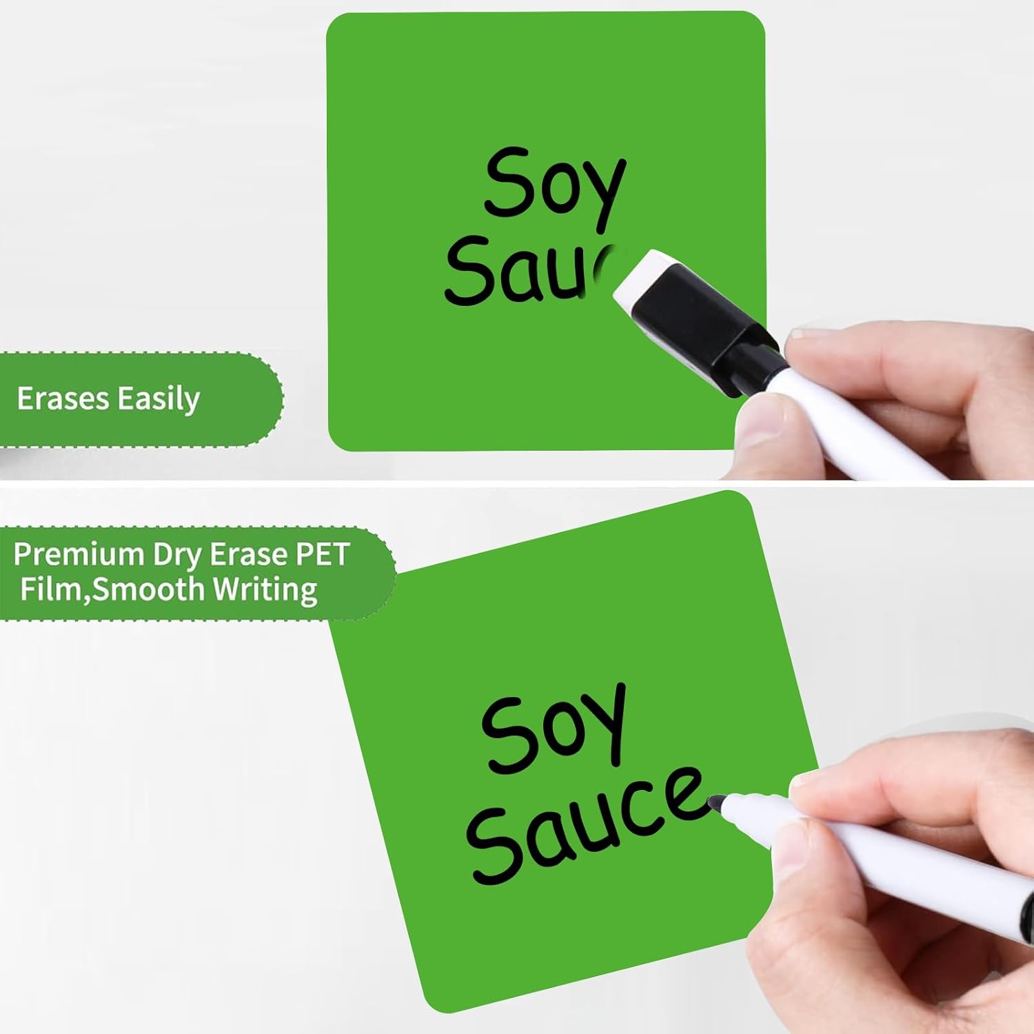 Dry Erase Sticky Notes Reusable Labels for Storage Bins Organizing Jar Pantry, Waterproof Removable Label Stickers for Kitchen Office School All Purpose Use (4x4 inches), Dry Erase Sheets