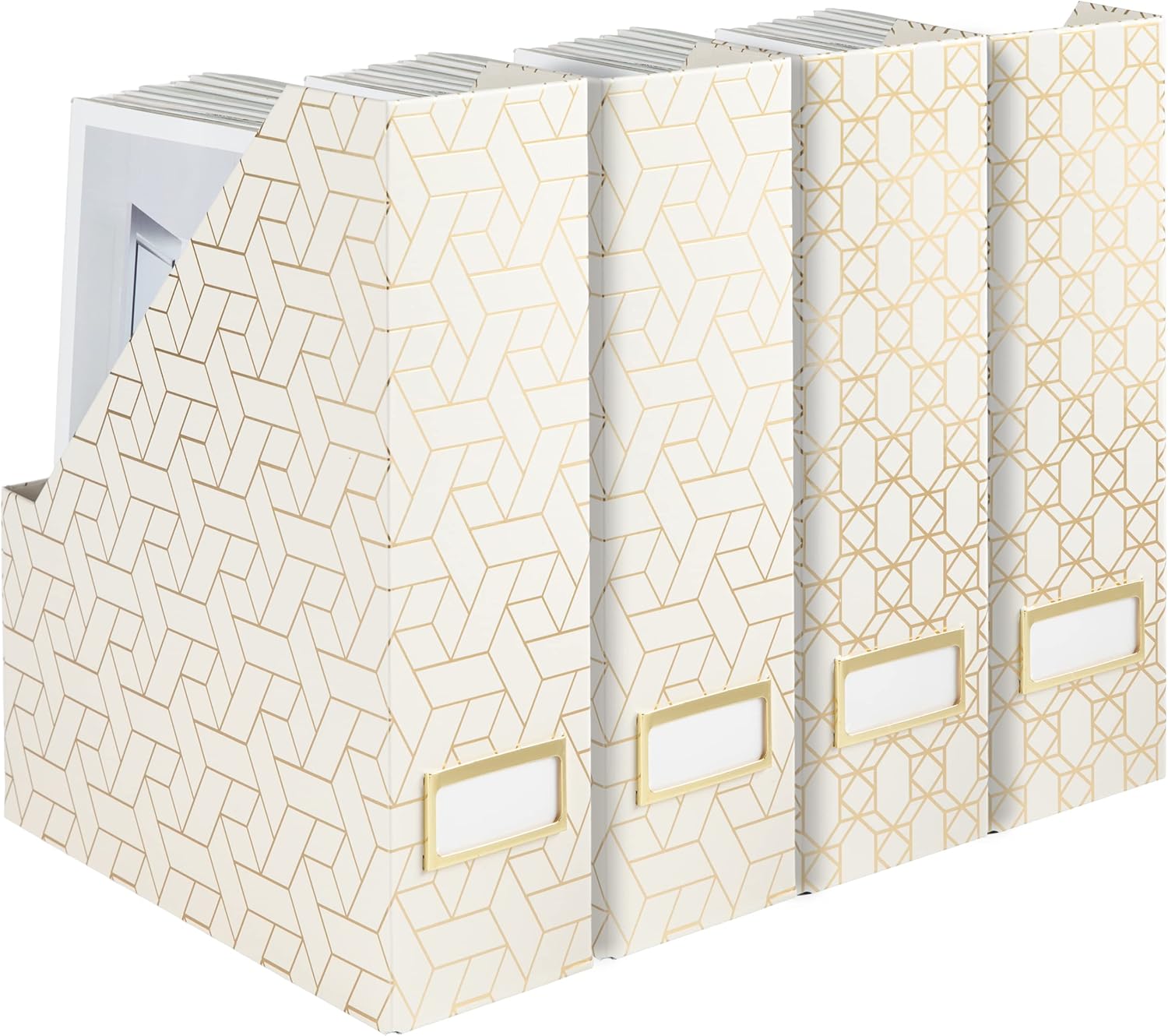 - Stylish Cream & Gold Design: Set of 4 foldable magazine holders featuring an elegant cream color with a gold woven design, adding a vintage touch to your office décor and storage solutions.