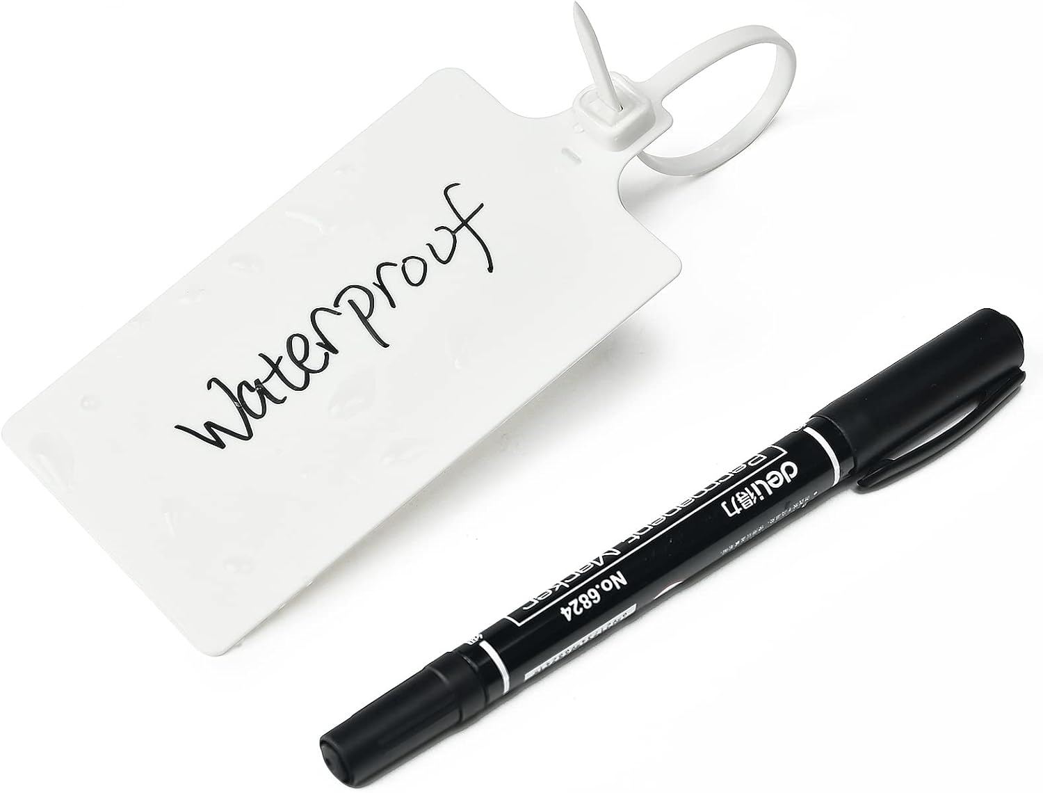 100 White Plastic Writable Shipping Tags - Large, Waterproof, Hanging Labels with One Permanent Marker Pen