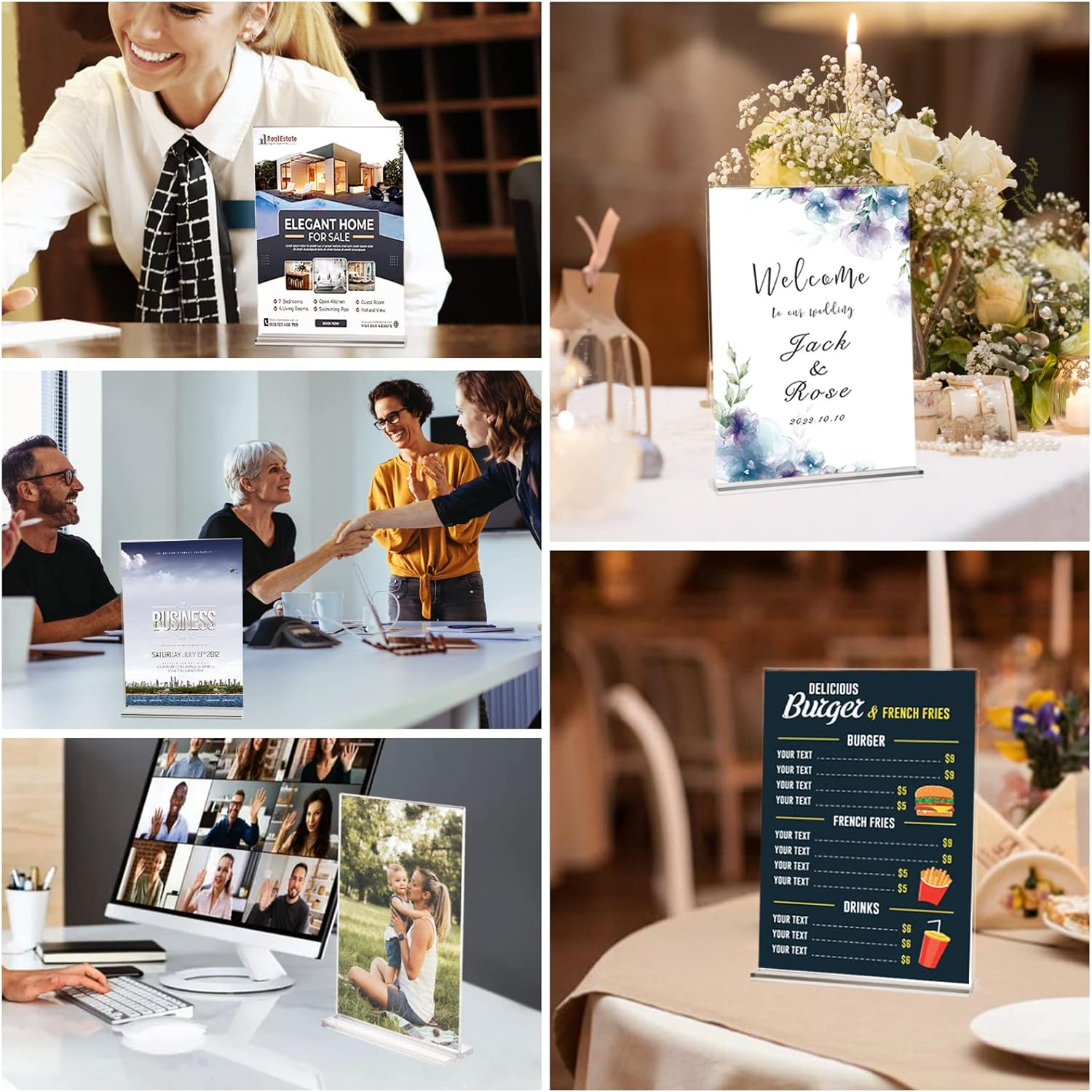 - Versatile for Any Setting:Ideal for restaurants, weddings, trade shows, offices, or exhibitions. Works as flyer holder, picture frame, or welcome sign holder.