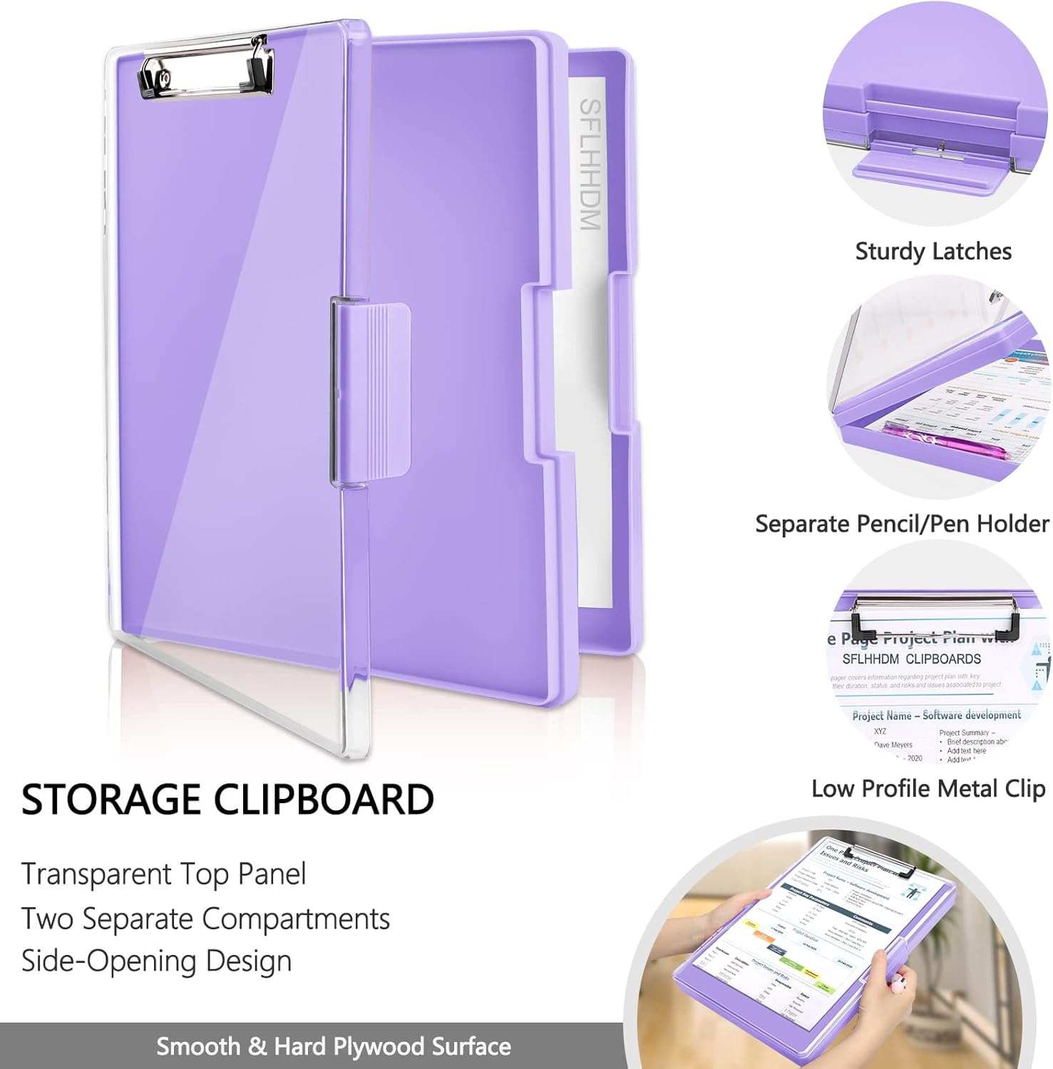 Clipboard with Storage,Heavy Duty Clip Boards 8.5x11 with 2 Storage Case,Clear Visible Top Panel Storage Clipboards,Side Opening Clip Boards,Nursing Clipboard Folder Case for Office Supplies-Purple