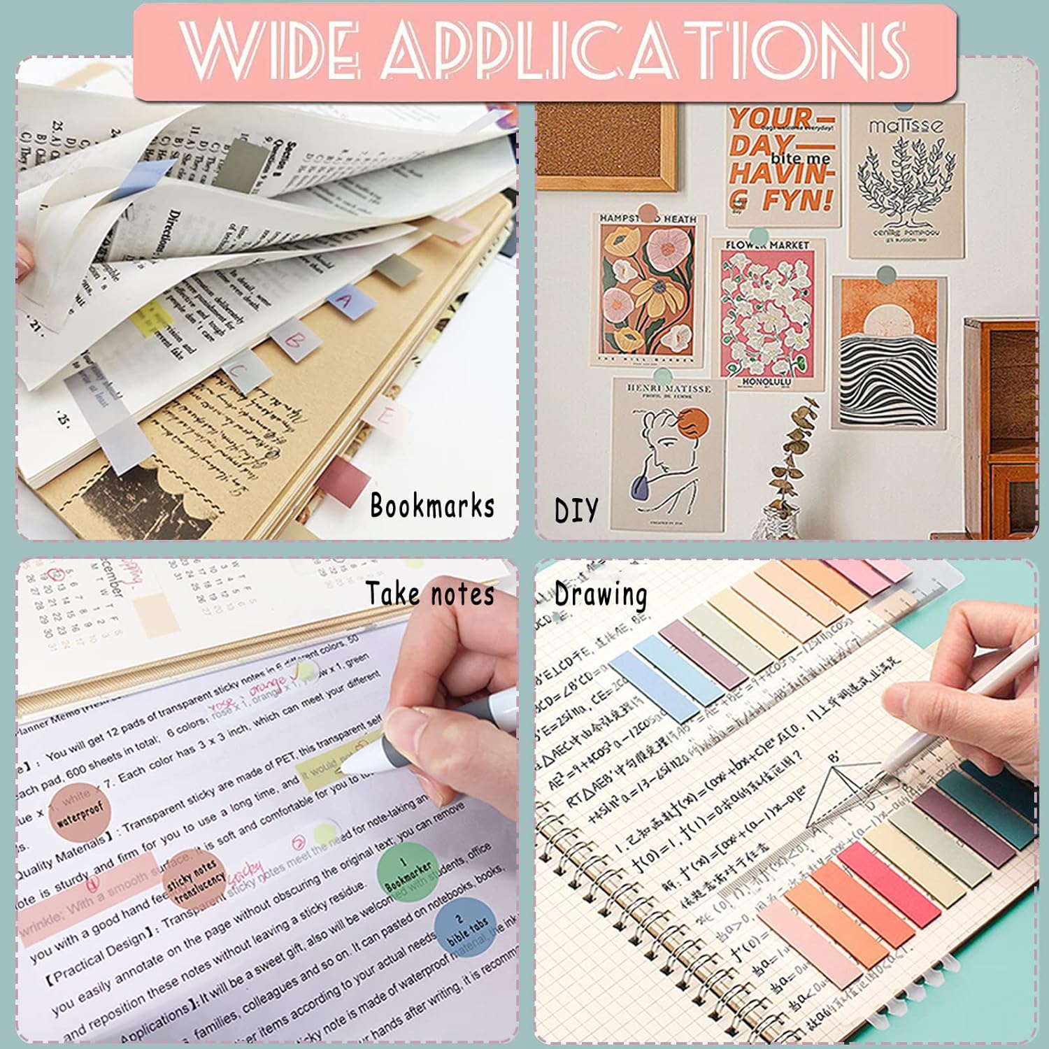- 【Study Supplies】: These sticky tabs are practical, easy to reposition, and make a must-have addition to the office supplies of adults and school supplies of kids or teens. Offer them as a thoughtful present, on any occasion.
