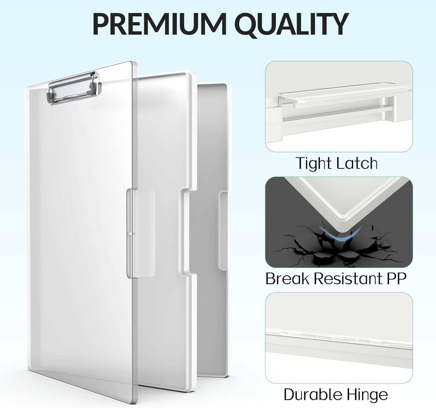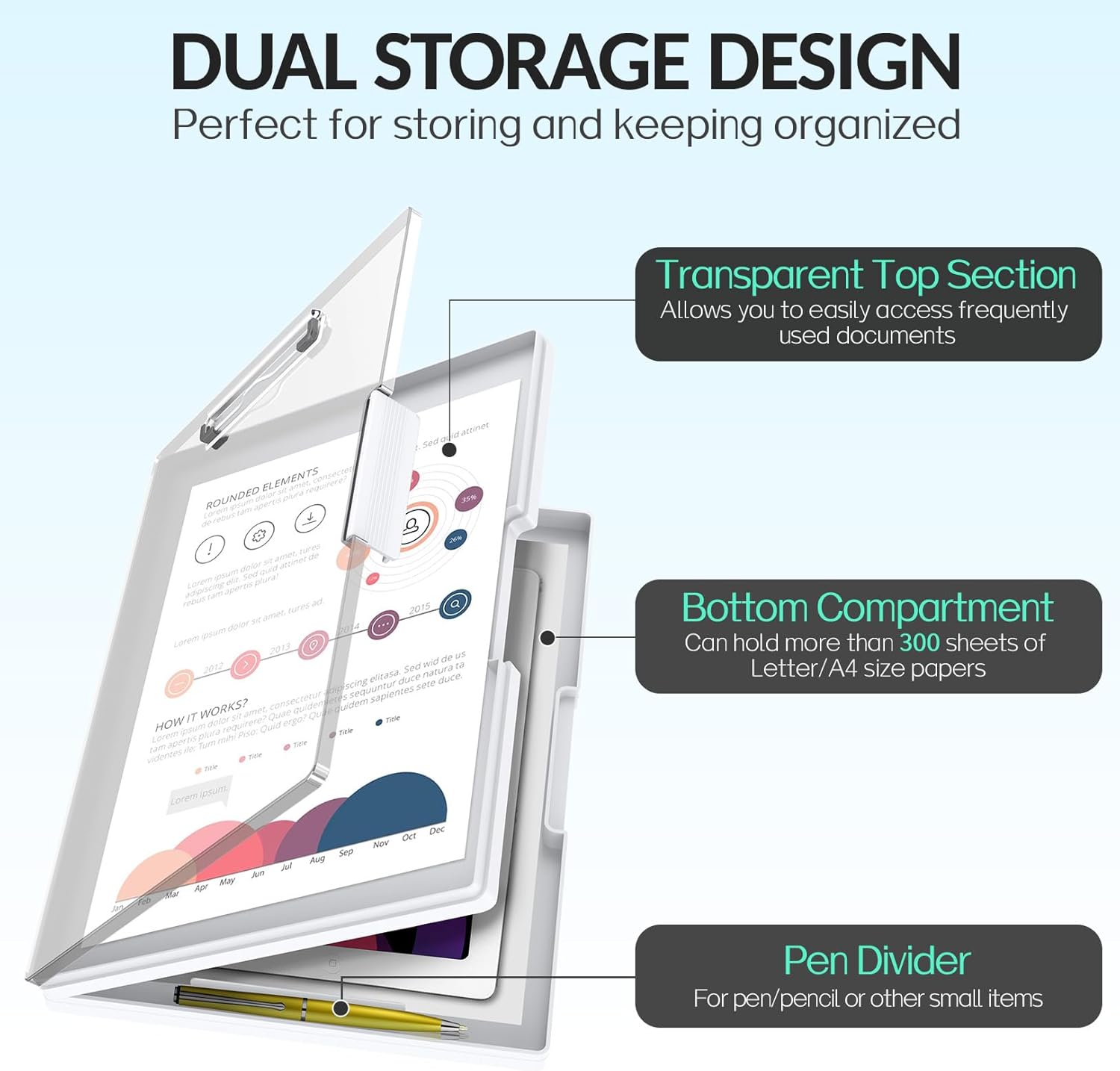 Sooez Clipboard with Storage, Heavy Duty Cleaview Clip Boards 8.5x11 with Dual Storage, Dry Erase Plastic Nursing Clipboard, High Capacity Clipboards Folder for Teacher Nurse, School & Office Supplies
