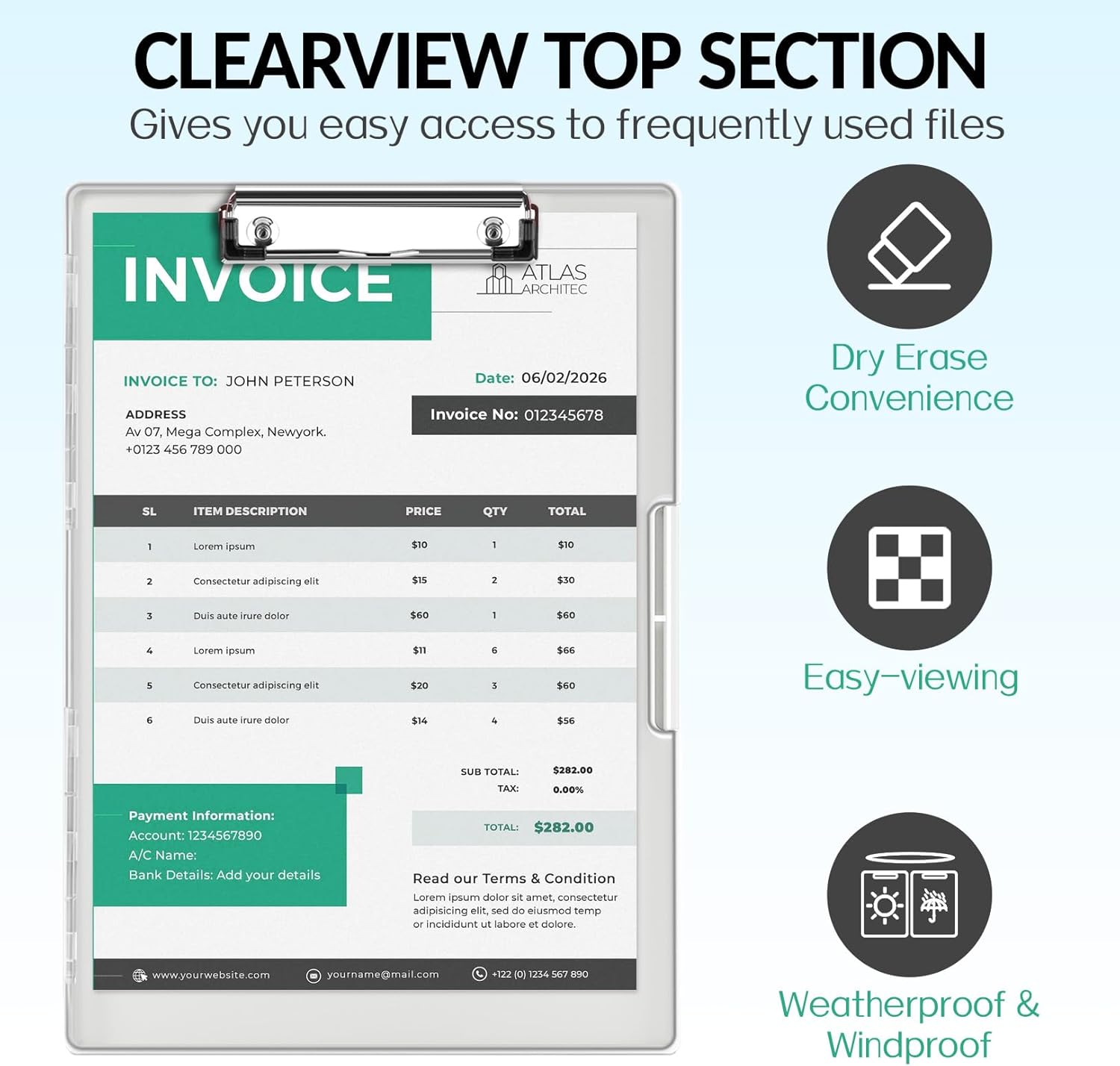 - Dry Erase Top Compartment: The transparent top section is compatible with dry erase markers (not included) and perfect for writing or reusing the same paper. Keeps your rosters and playlists dry and safe even on bad rainy days and gives you easy access to frequently used documents