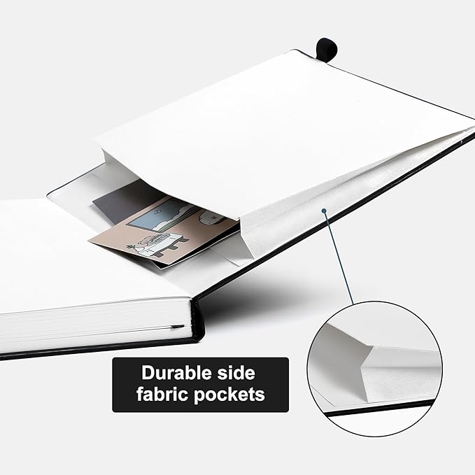 - Notebook with Pockets - Journal for women comes with a paper pocket and gold trimmed fabric to make the pockets more durable. Hardcover Notebook has colorful ribbons and elastic bands and a pen insert on the right side of the journal.