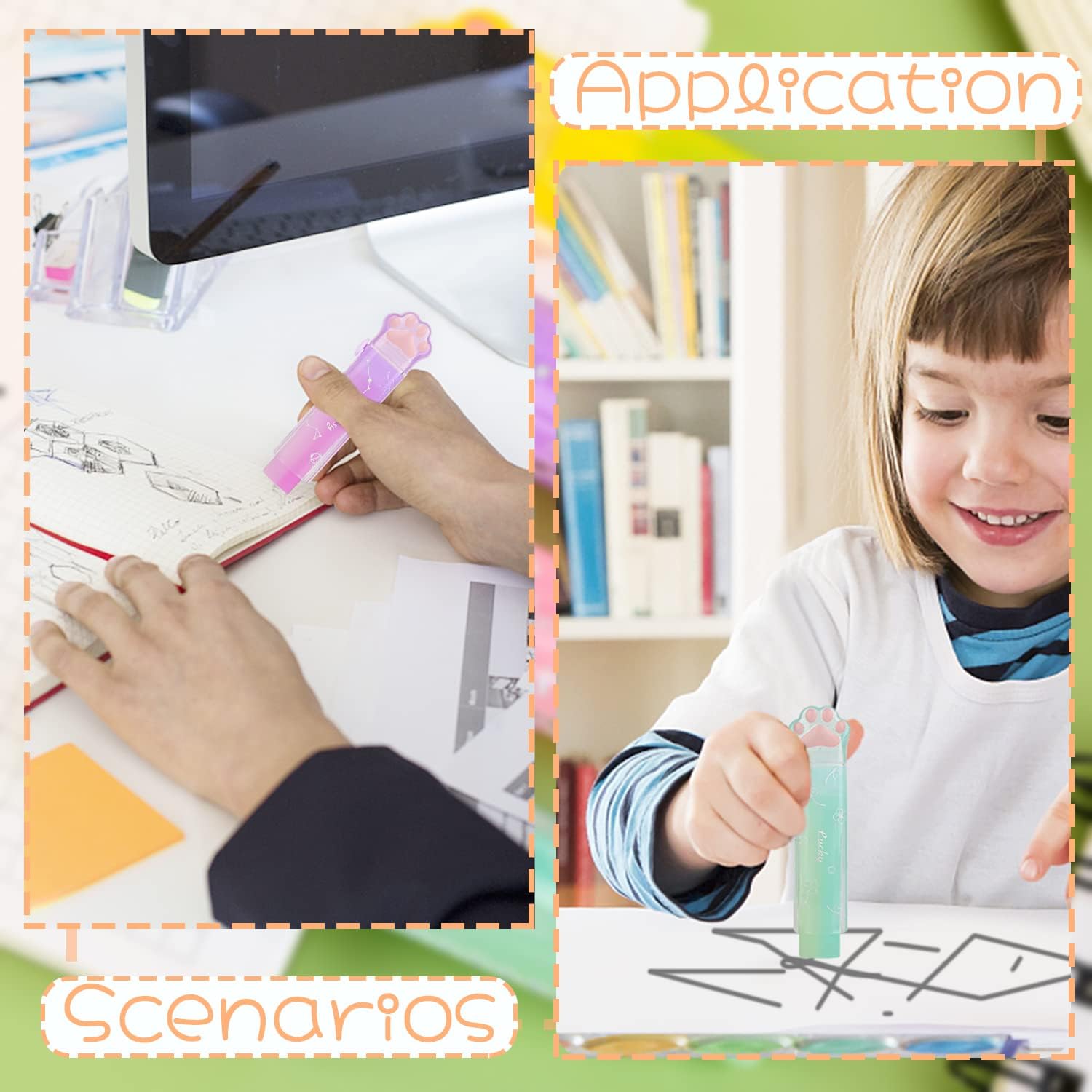 - RETRACTABLE DESIGN- These cute erasers with cat paw plastic sleeve are retractable. You can slide the eraser in or out with the lock easily, convenient to use on erasing mistakes from writing or drawing